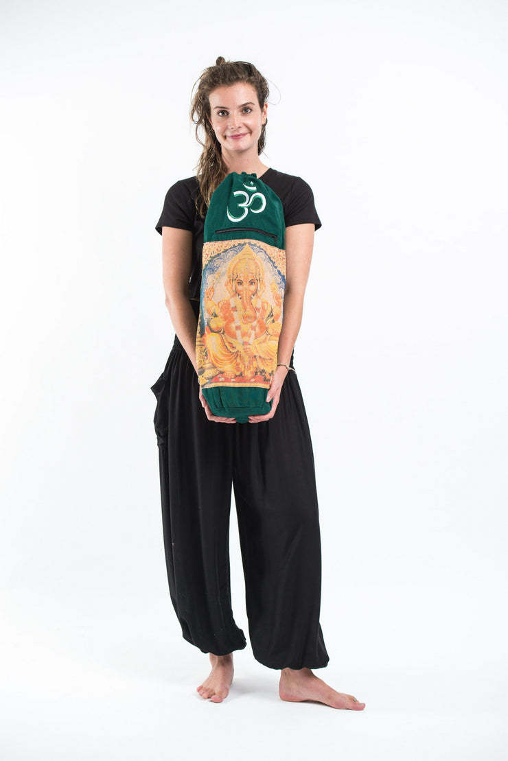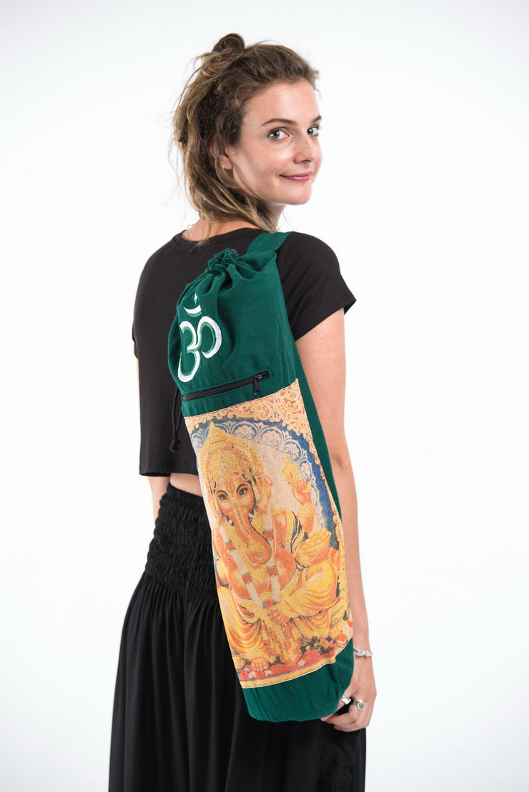 Stunning cotton yoga mat bag with intricate Ganesh design print and beautiful embroidered Om symbol.
