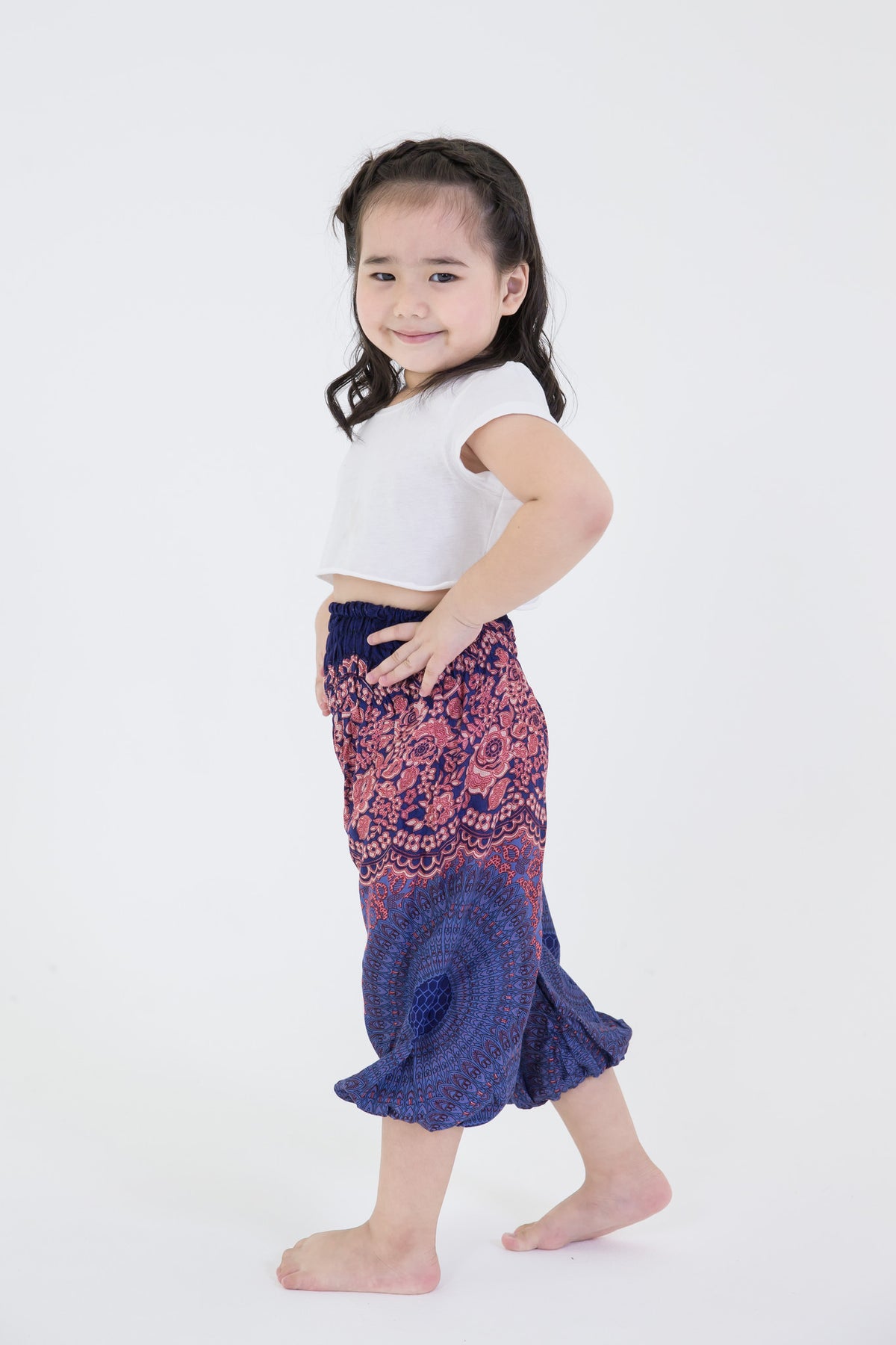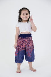 Super soft classic kids high cut smocked waist Thai harem pants or "Elephant Pants" (Kang-Keng-Chang). Made with soft lightweight flowy rayon fabric. With the elastic ankles, you can pull them up or leave them down - convenient for any play hours.