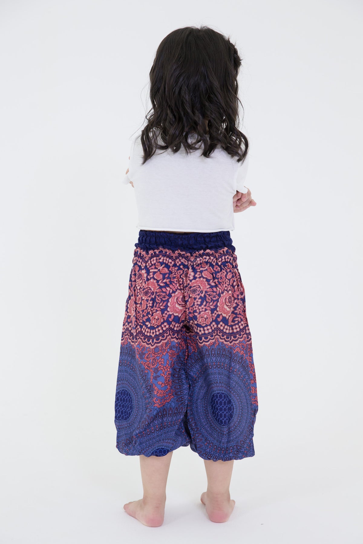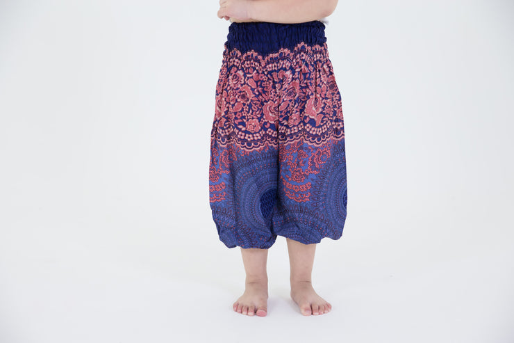 Kids Geometric Mandalas Harem Pants in Blue