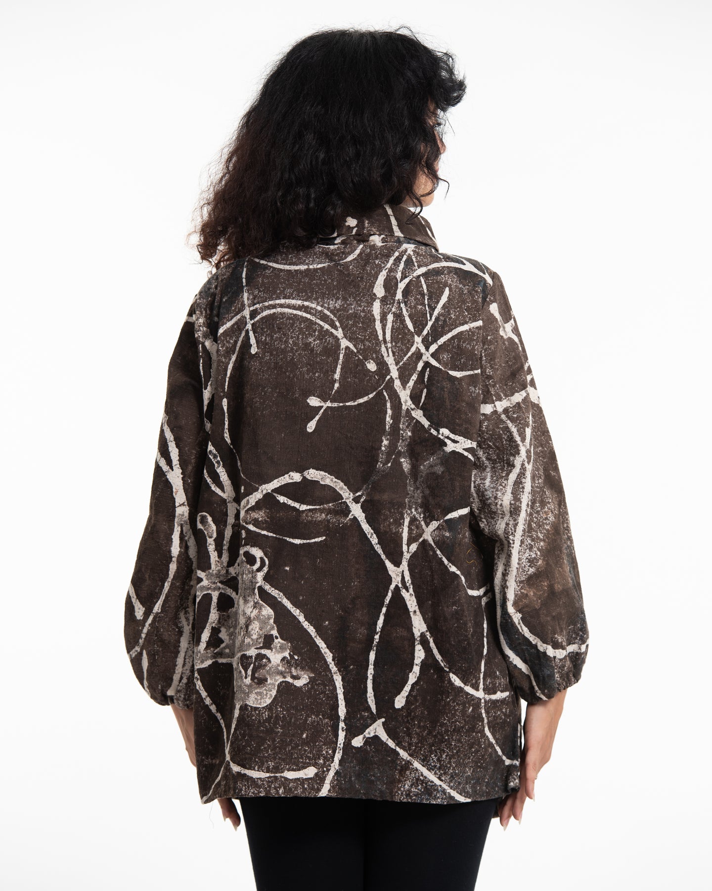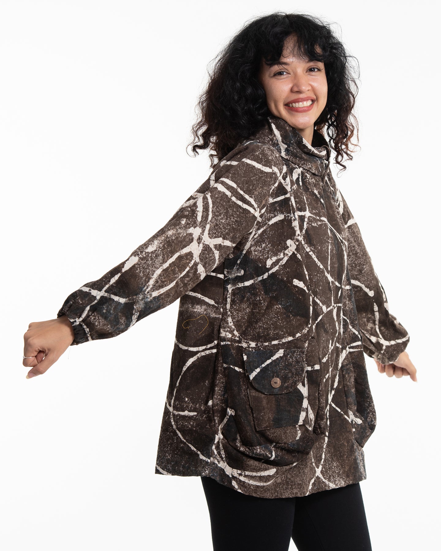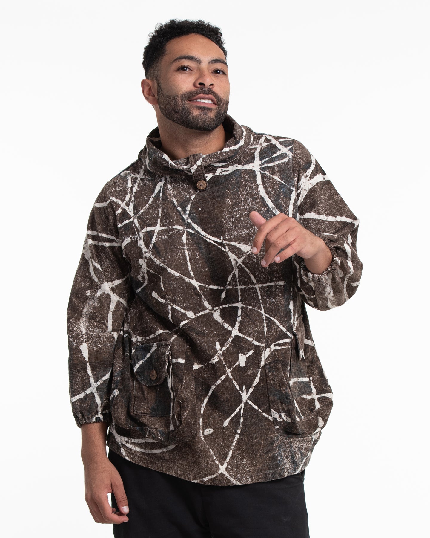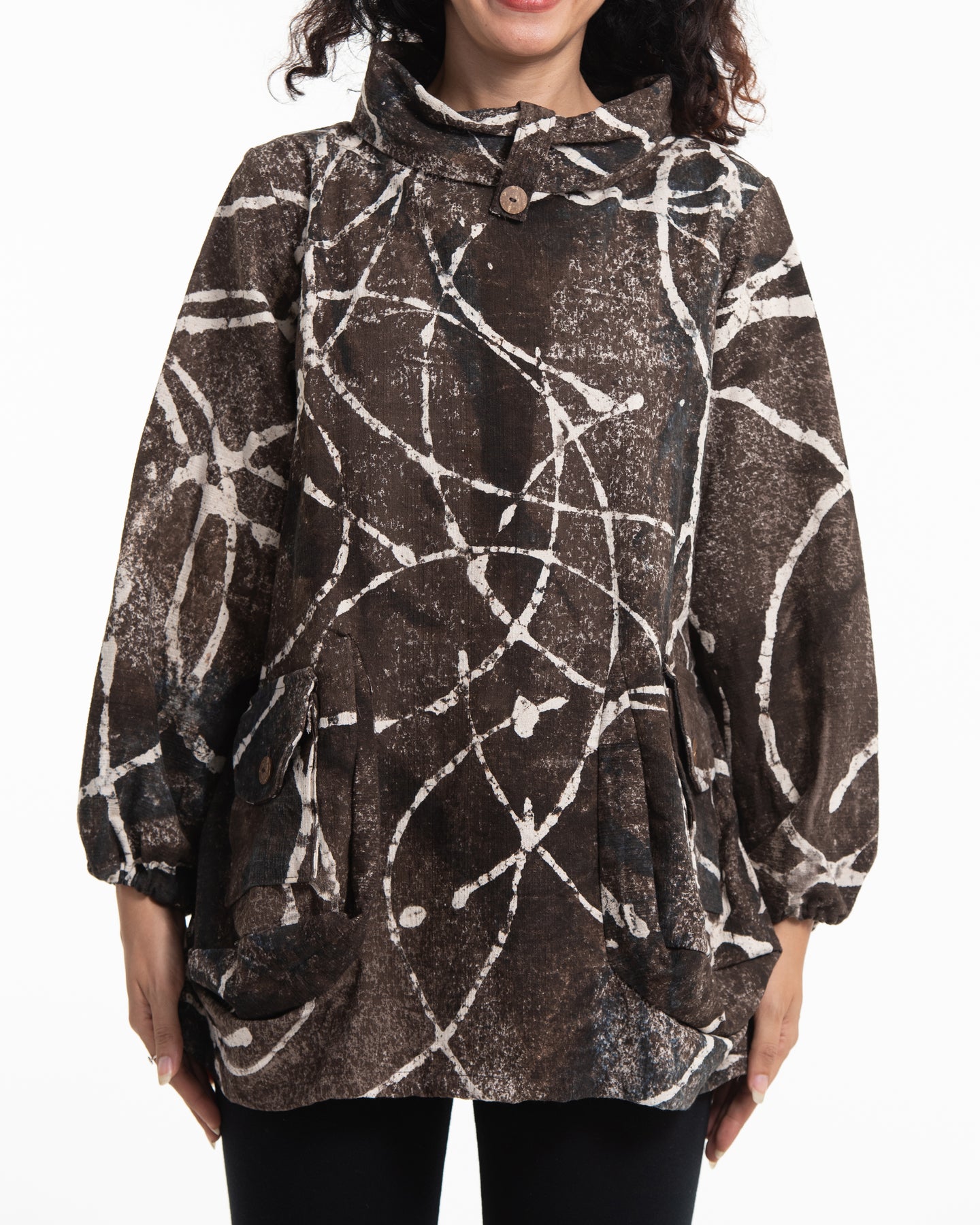 Circle Hand Printed Non-Stretch Thai Cotton Pullover in Brown
