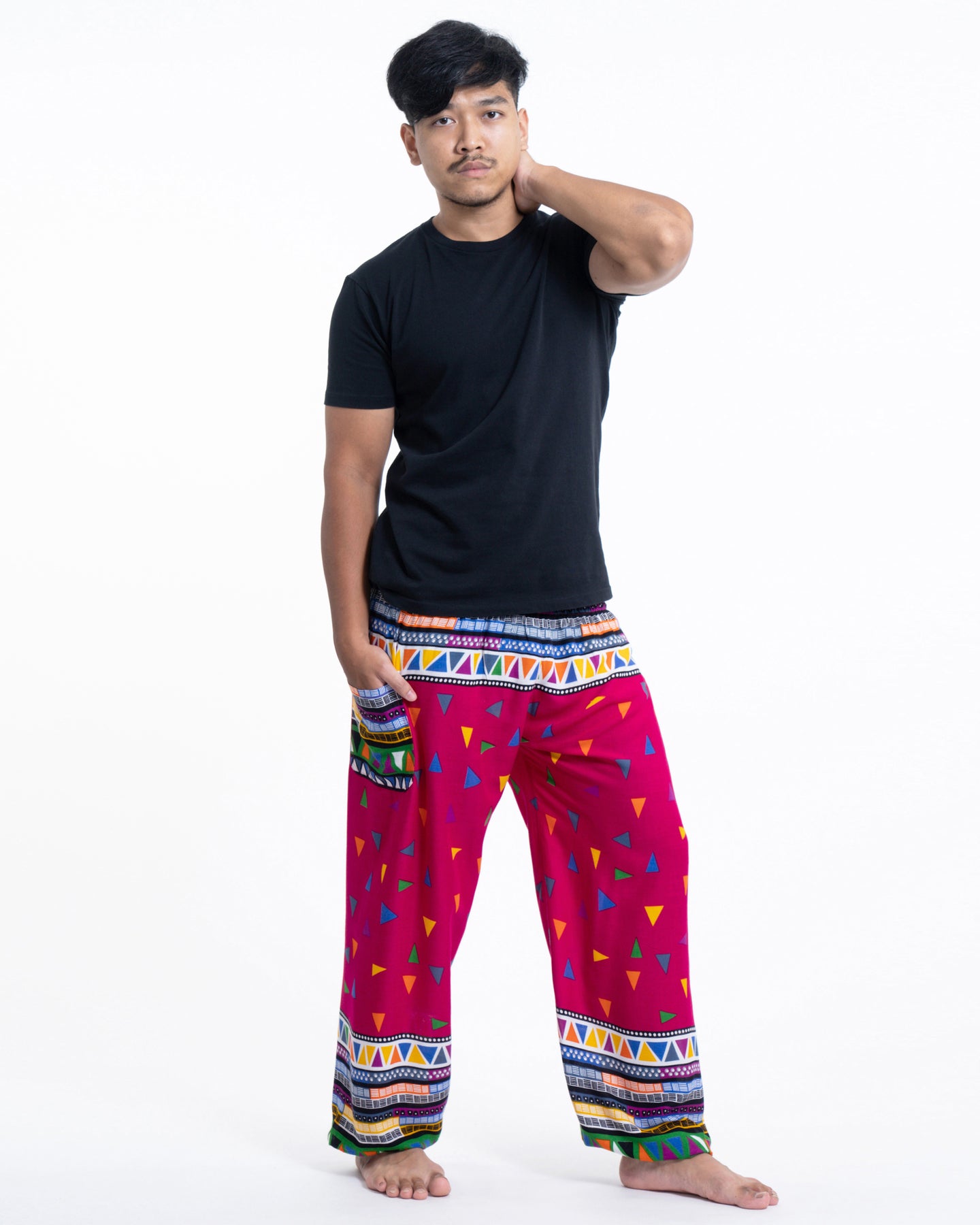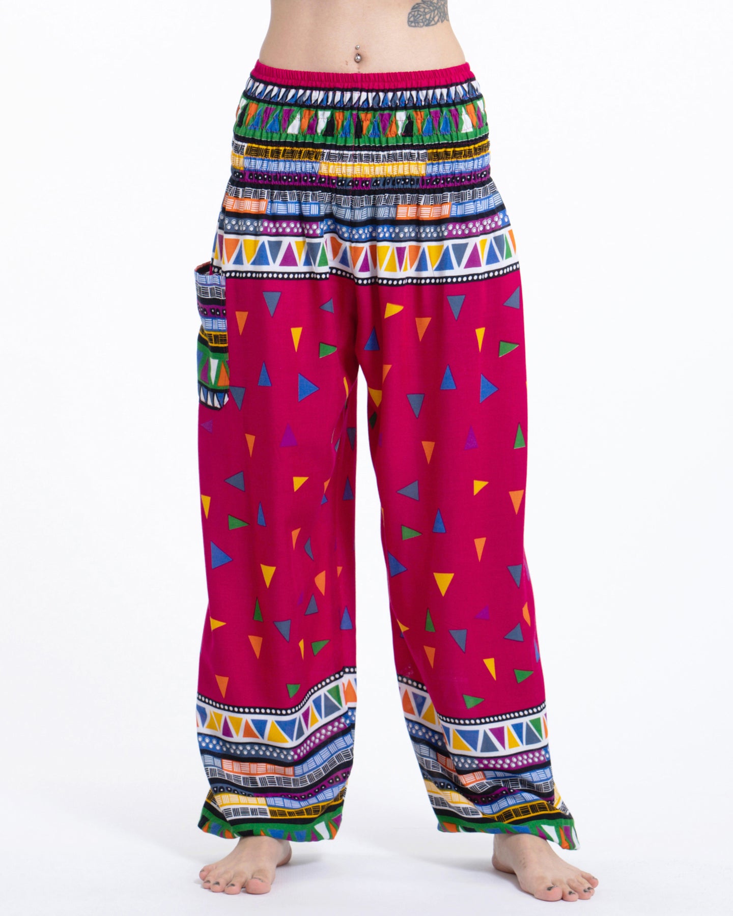 Super soft and lightweight Unisex Triangles Harem Pants made with Thai rayon fabric.