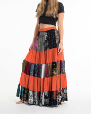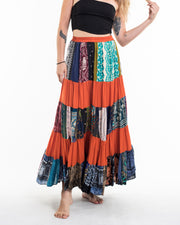 This one-of-a-kind patchwork skirt is sustainably made from upcycled cotton and rayon fabric scraps, featuring a beautiful and eclectic design with various shapes and sizes of fabric pieces sewn together. The lightweight and comfortable materials make it a perfect summer wear option.