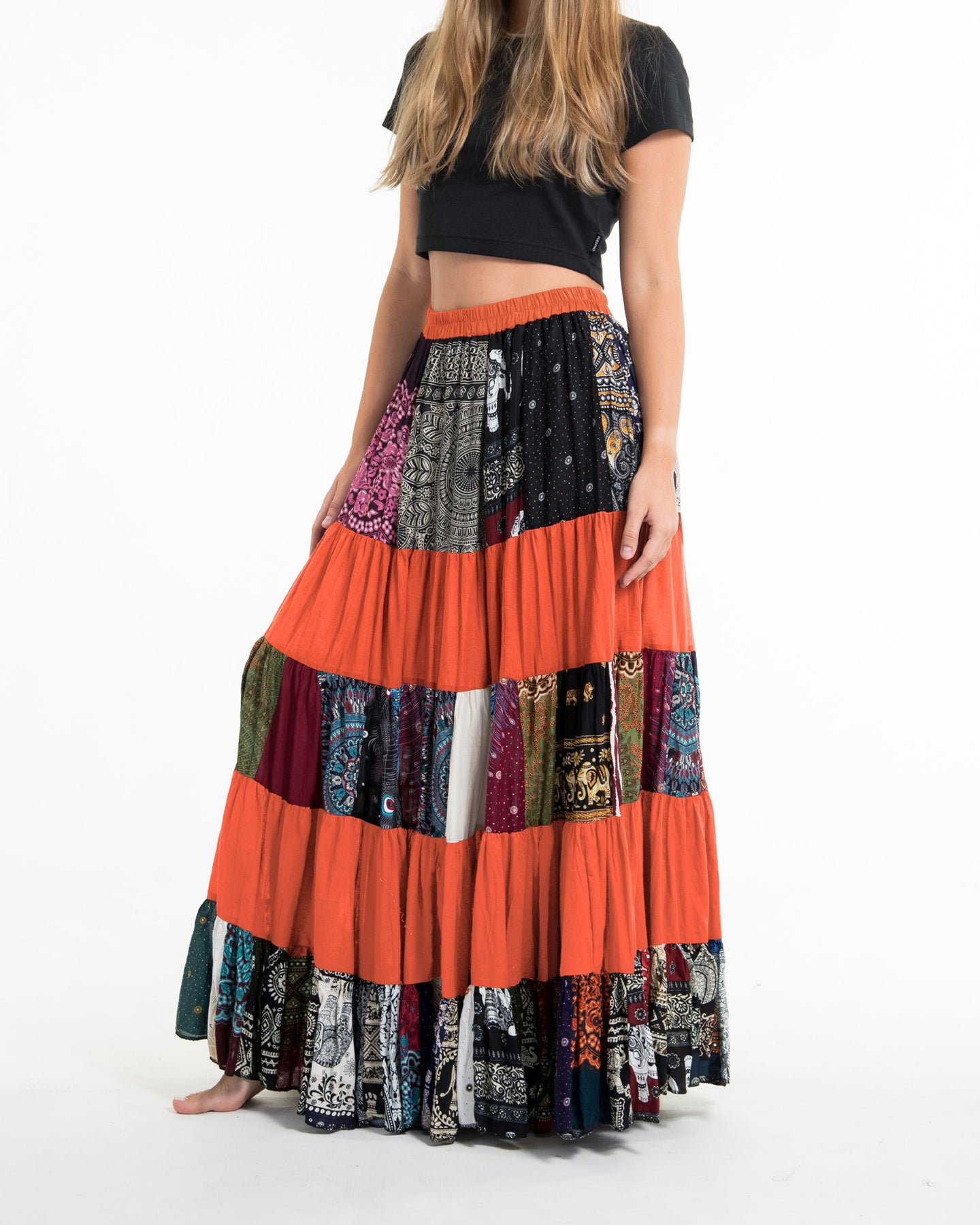 * Kindly note that the patchwork parts of each skirt are made from different fabric scraps, resulting in unique color combinations. The photos provided serve as a general guideline for the color scheme, and your skirt may vary in color and pattern.