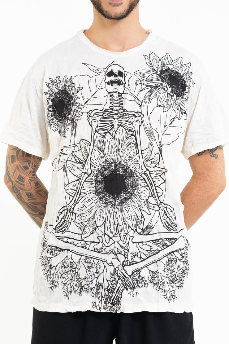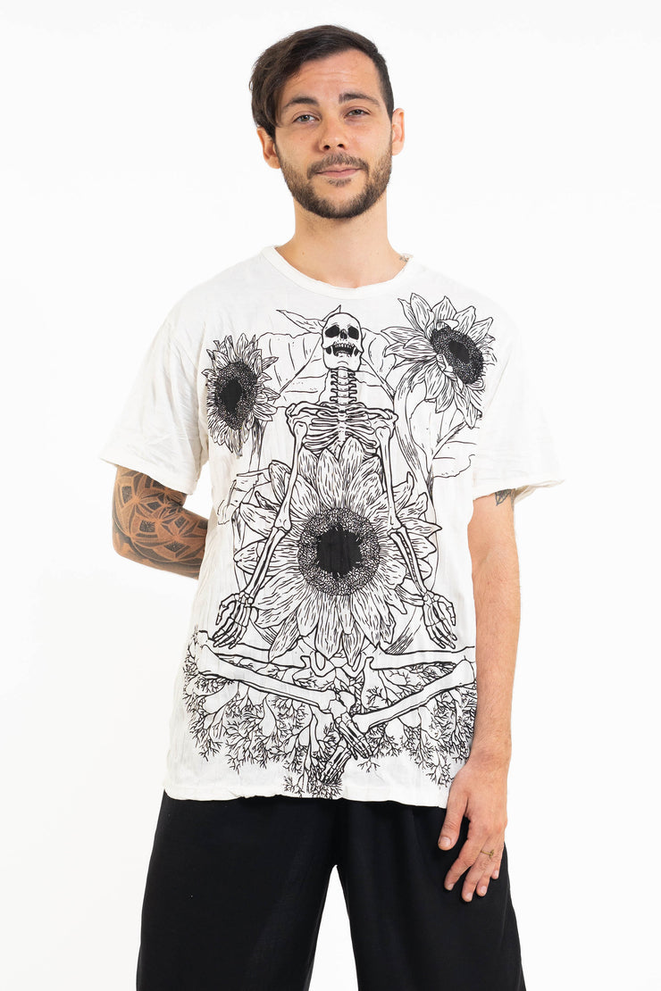 Mens Sunflower Skull T-Shirt in White