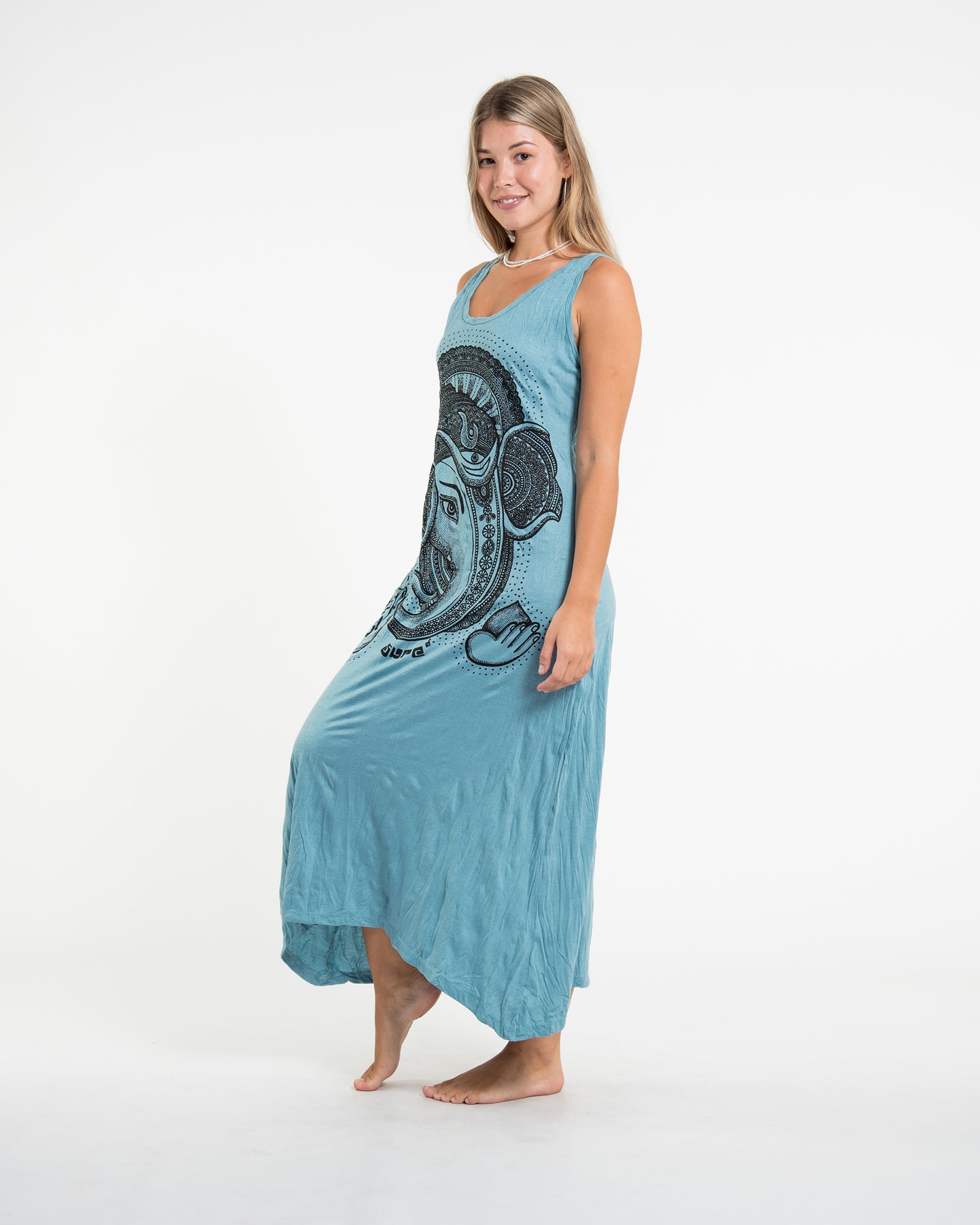 Womens Divine Ganesh Long Tank Dress in Turquoise