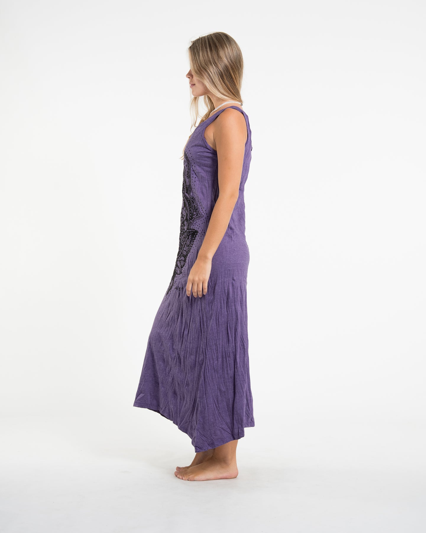Womens Hamsa Lotus Long Tank Dress in Purple