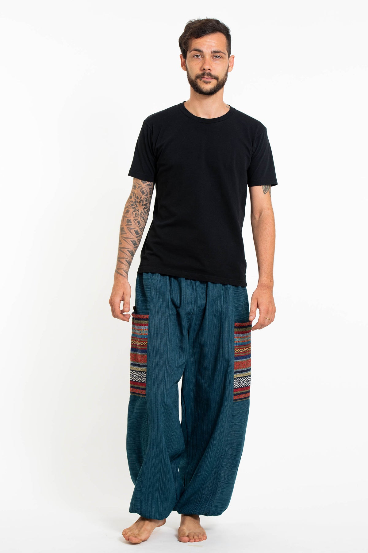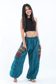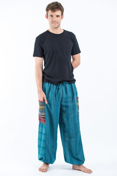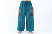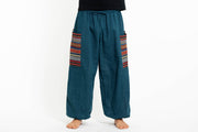 Drawstring Pinstripes Cotton Pants with Aztec Pocket