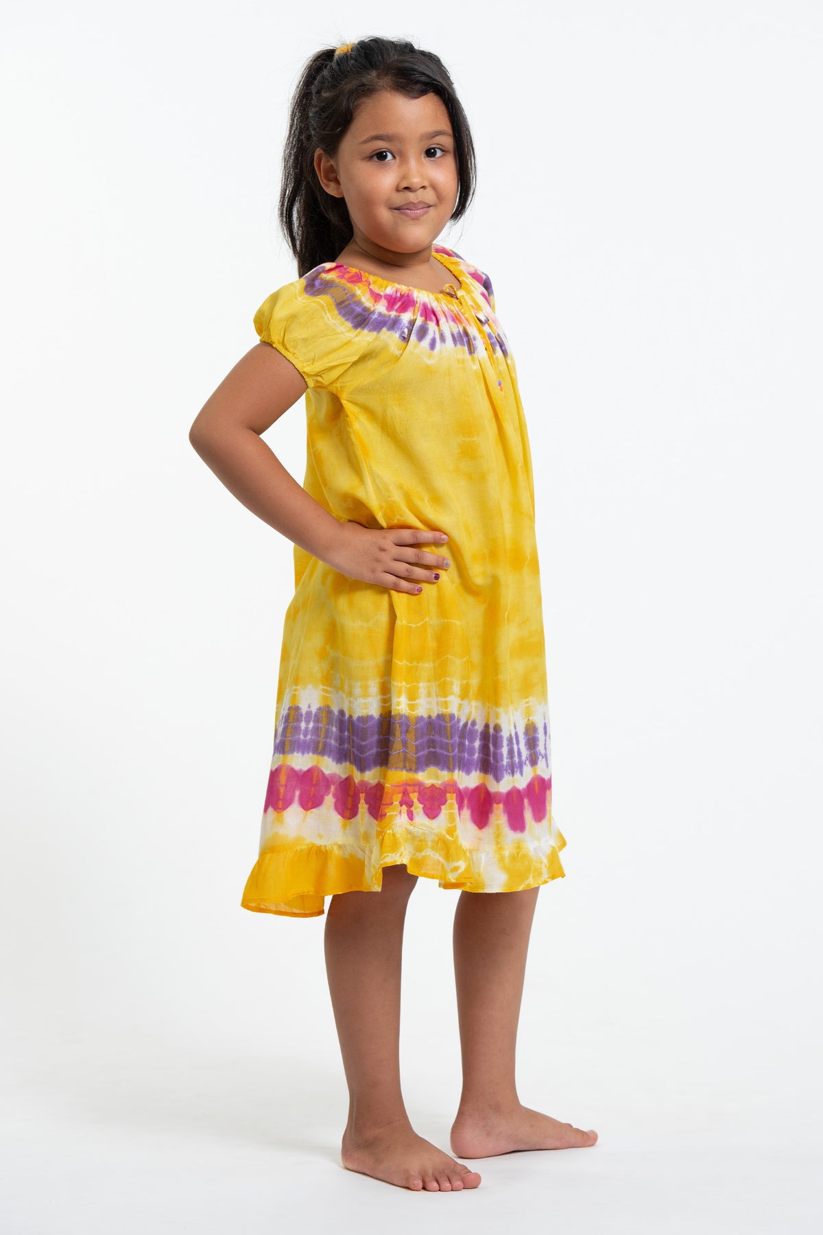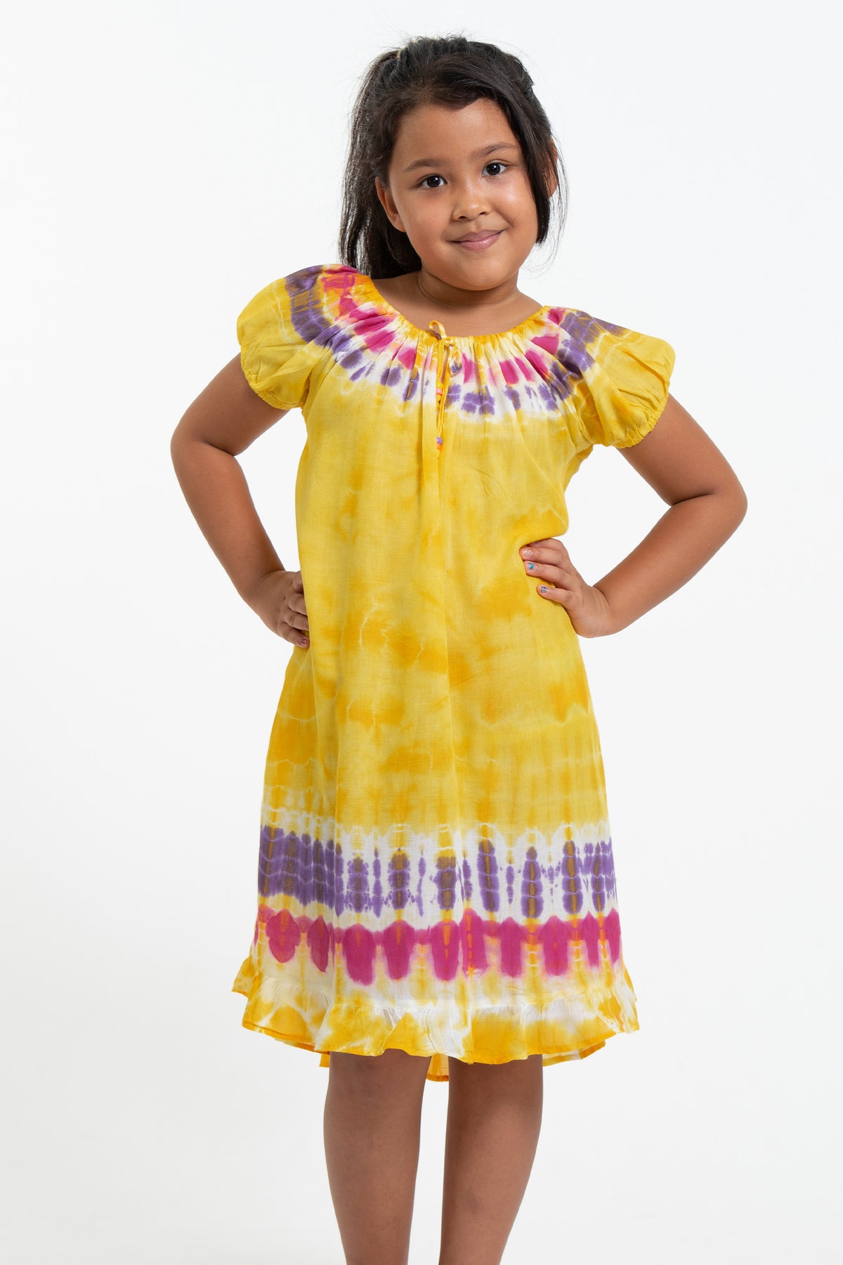 Kids Tie Dye Dress in Yellow