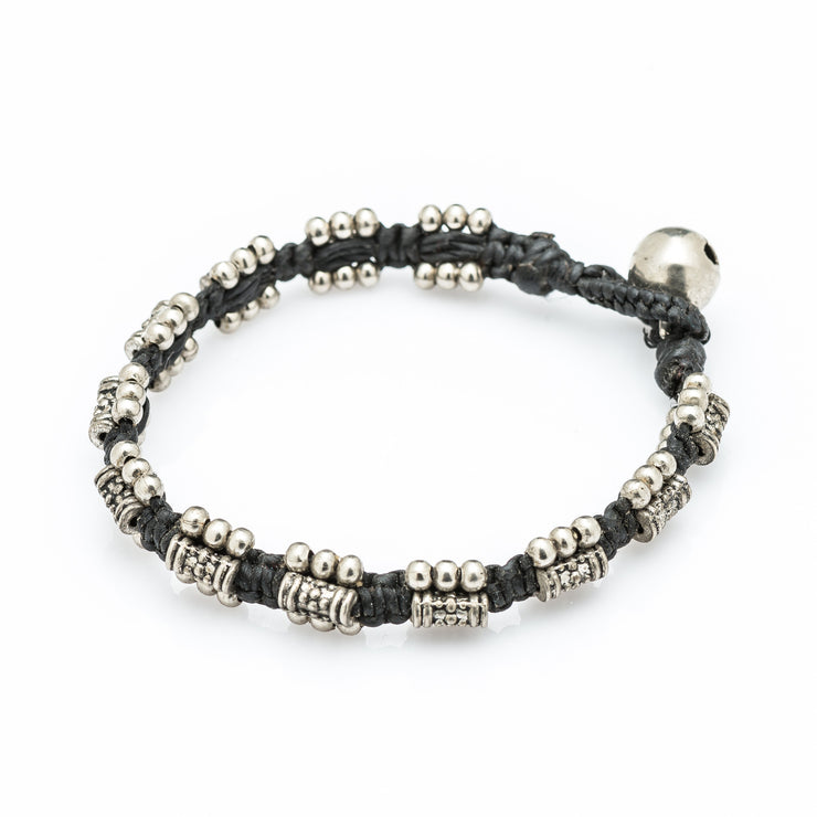 Charming little silver color beads waxed string bracelet. Comfortable and lightweight with 2-size adjustable loop closure.
