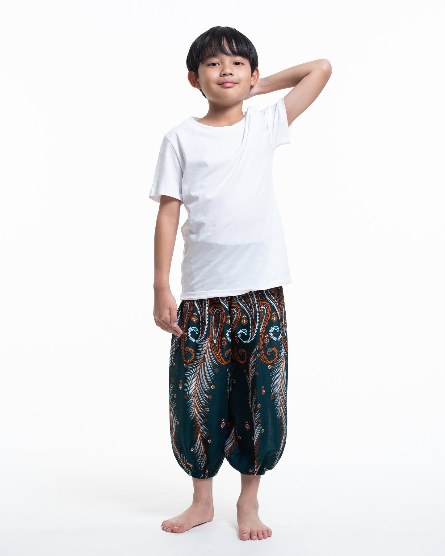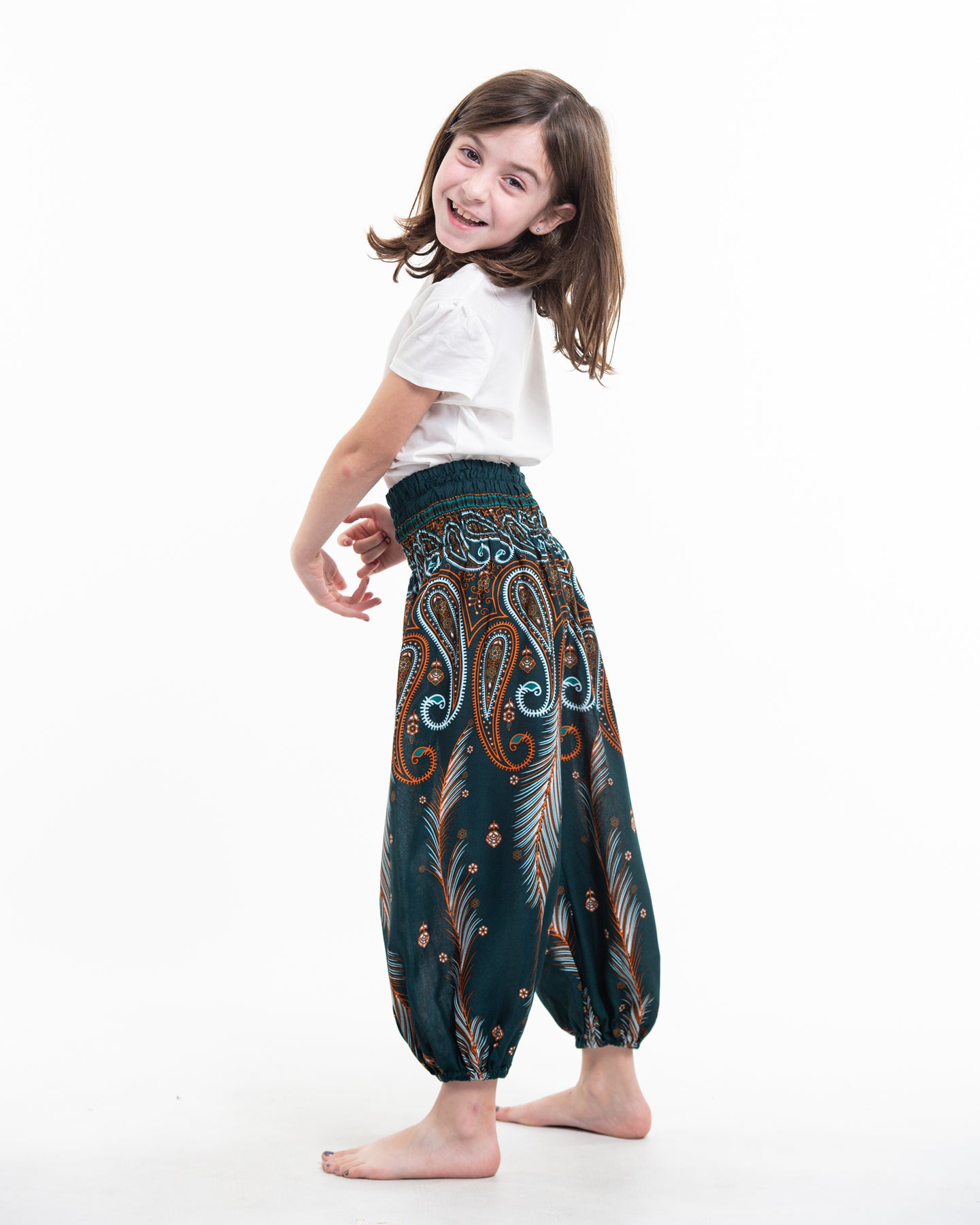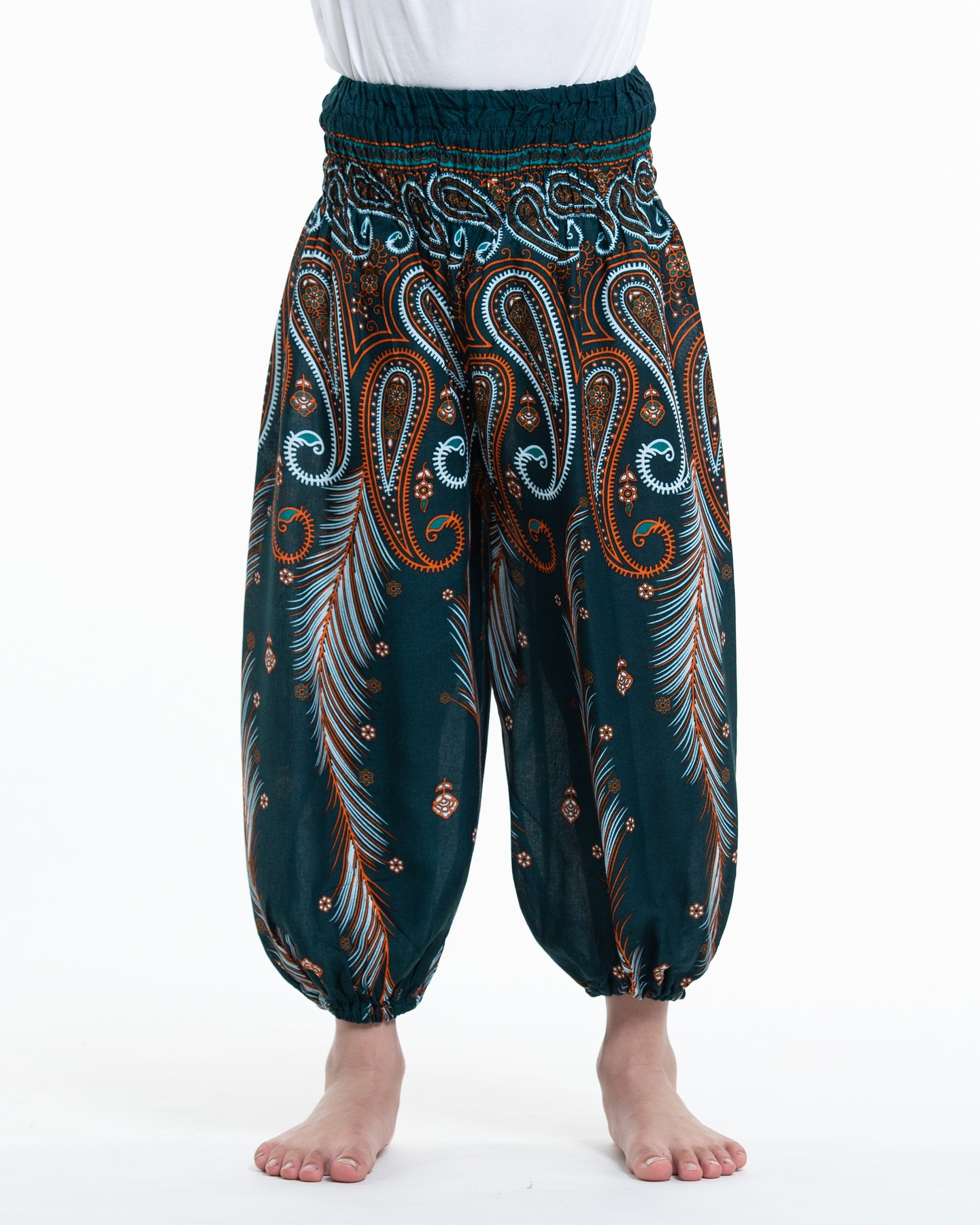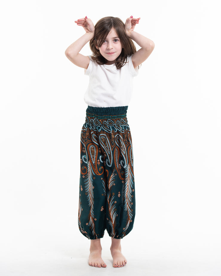 Kids Paisley Feathers Harem Pants in Green