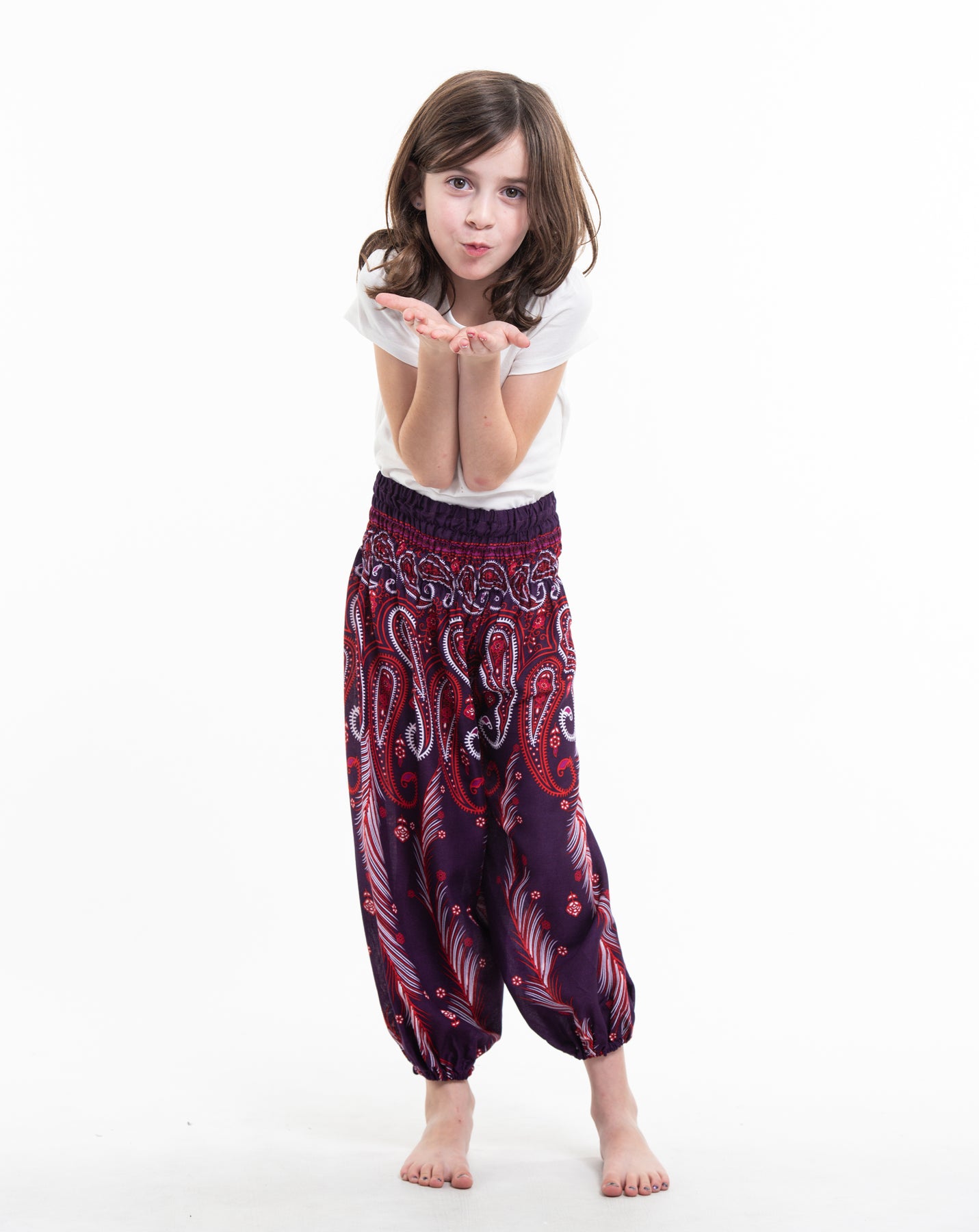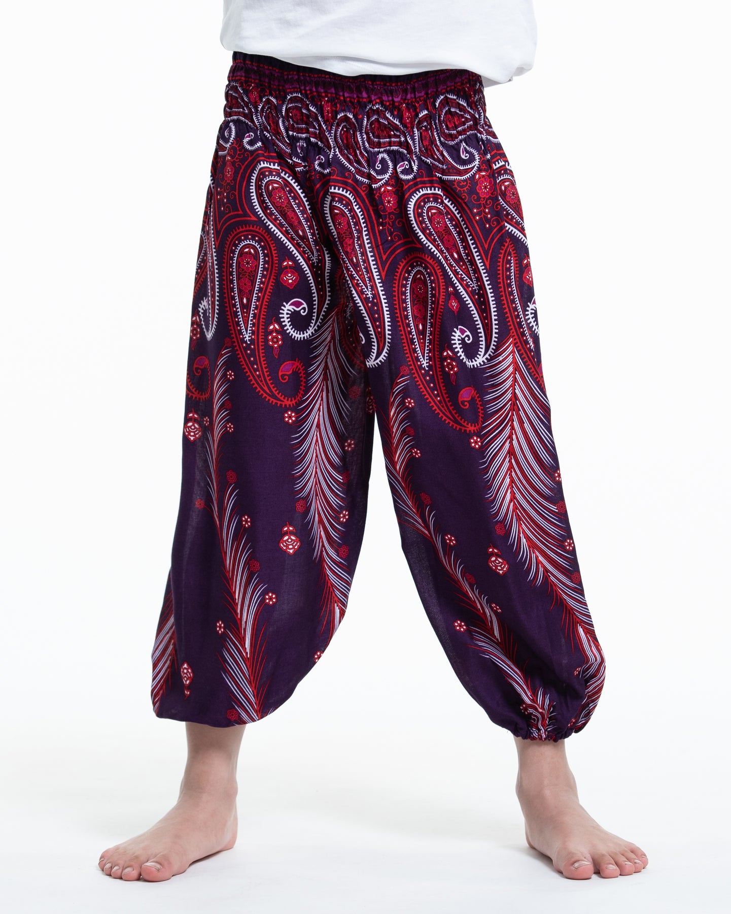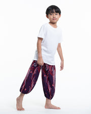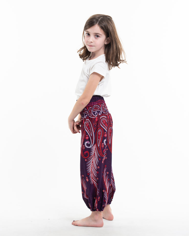 Kids Paisley Feathers Harem Pants in Purple