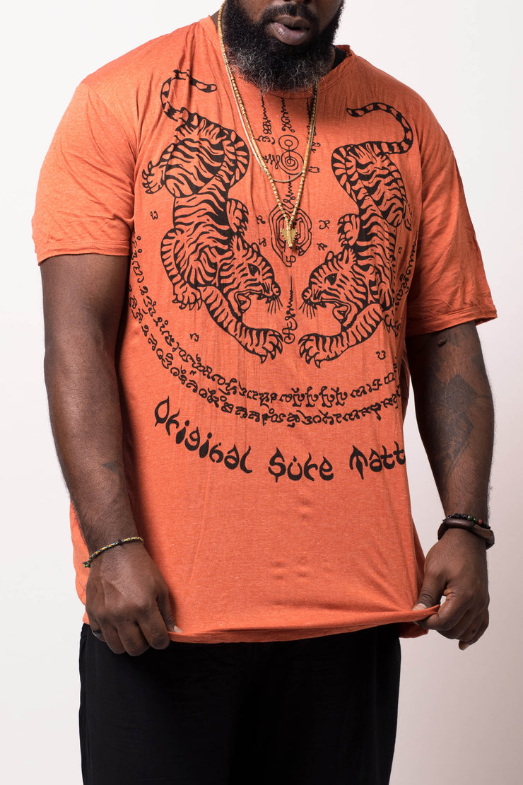 Plus Size Mens Thai Tattoo T-Shirt in Orange