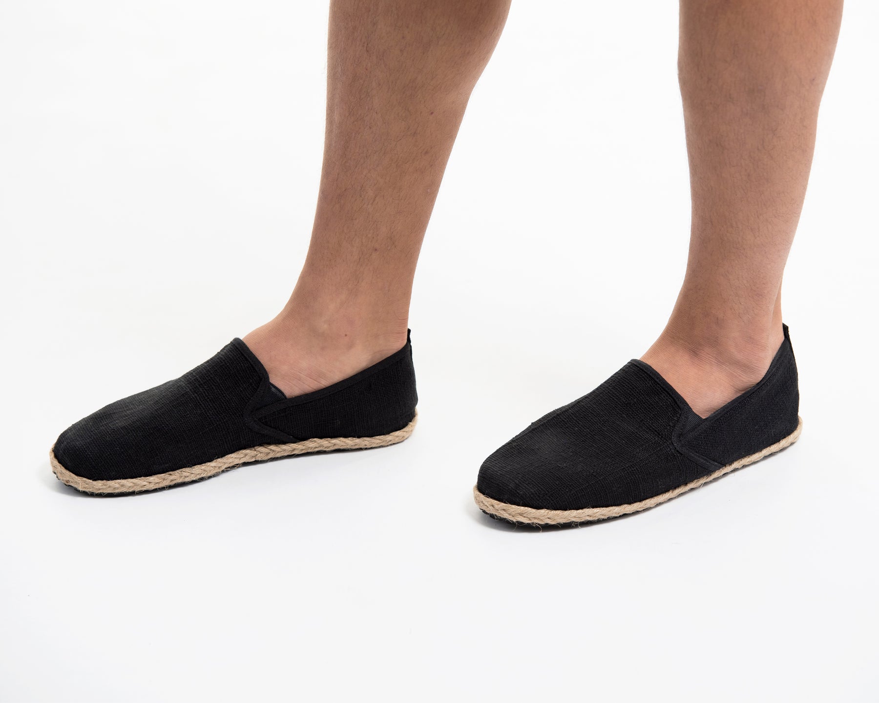 Thai handmade unbleached cotton slip-on shoes with jute trim. Comfortable and stylish for everyday look.