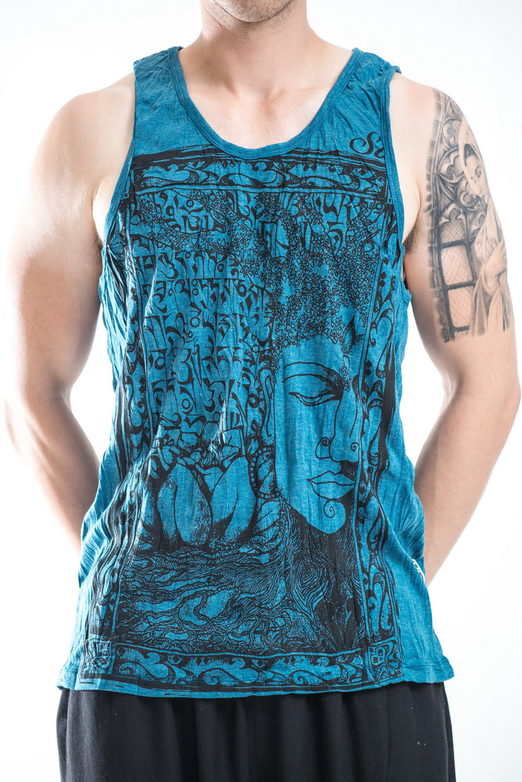Mens Buddha Sanskrit Tank Top in Denim Blue