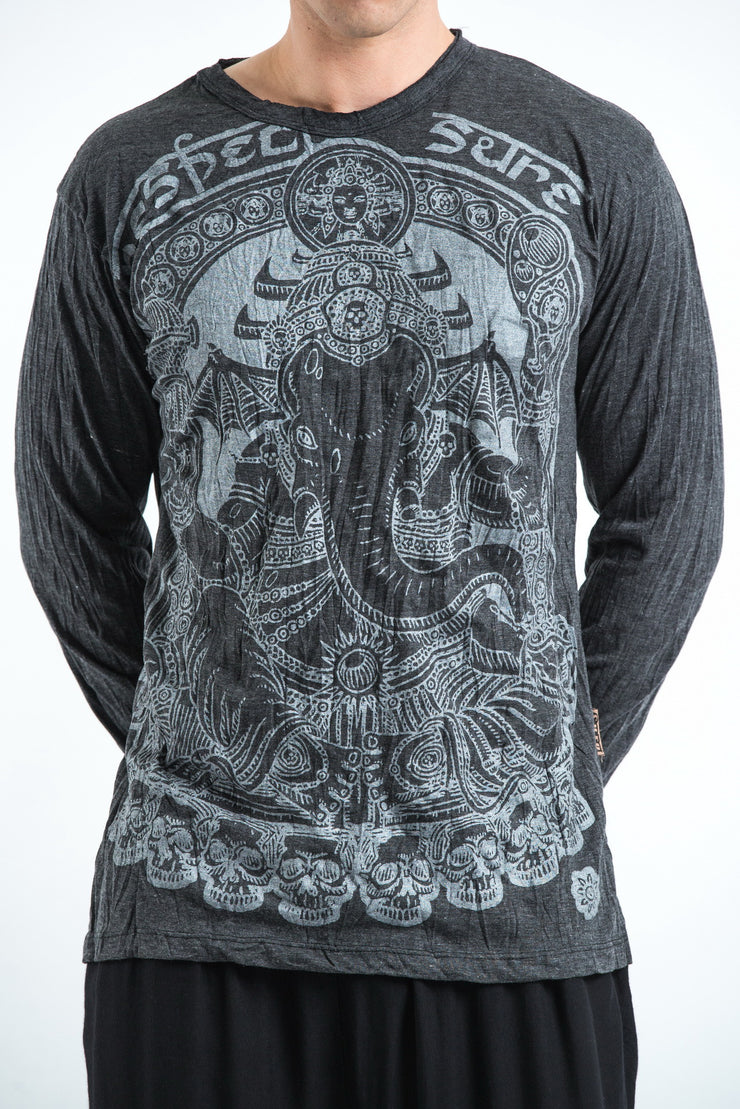 Unisex Batman Ganesh Long Sleeve T-Shirt in Silver on Black