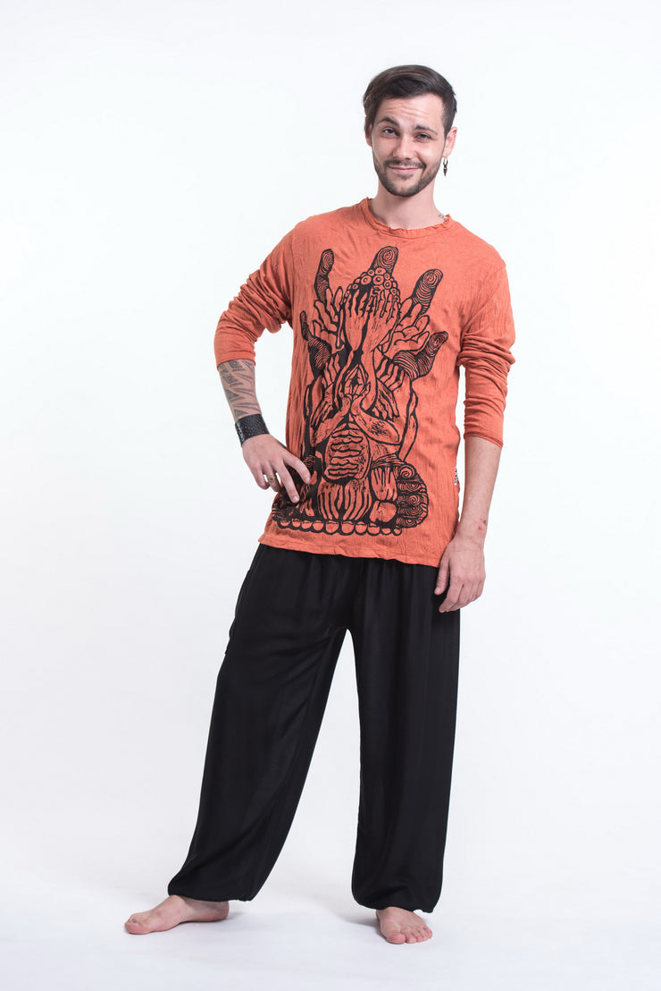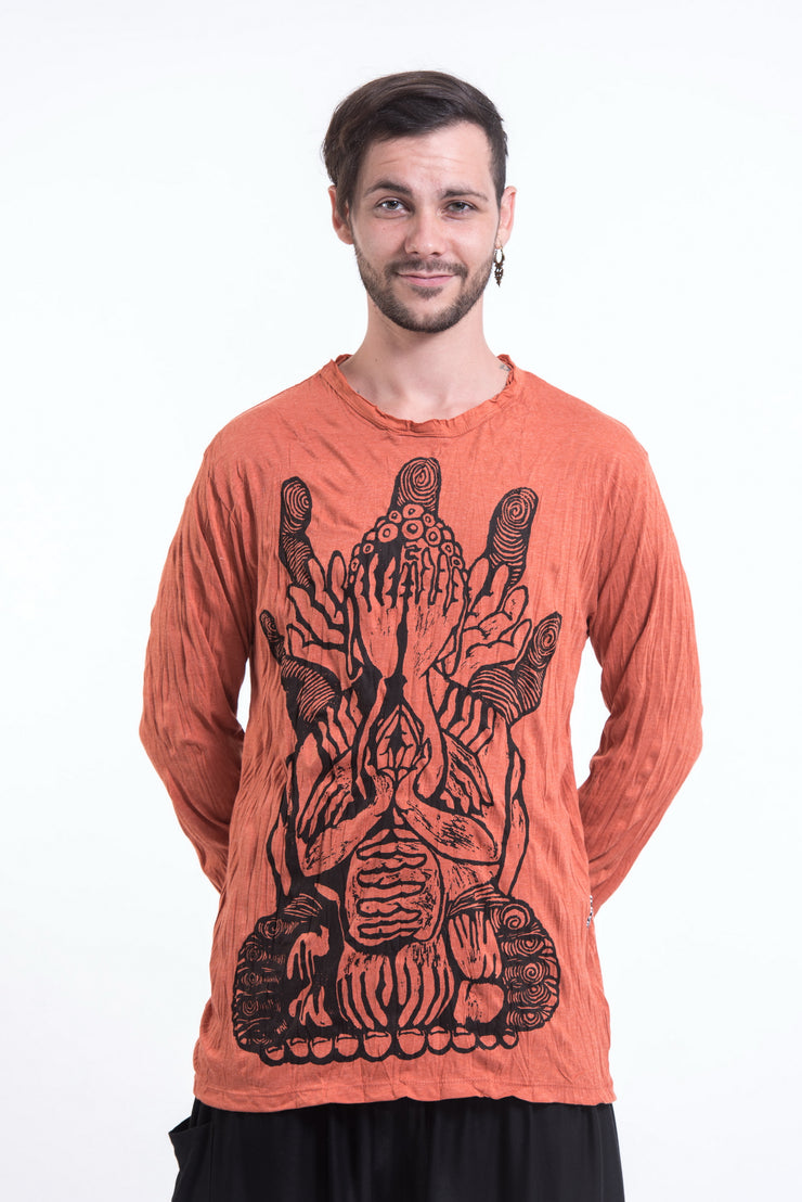 Unisex See No Evil Buddha Long Sleeve T-Shirt in Orange