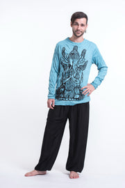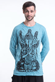 Unisex See No Evil Buddha Long Sleeve T-Shirt in Turquoise