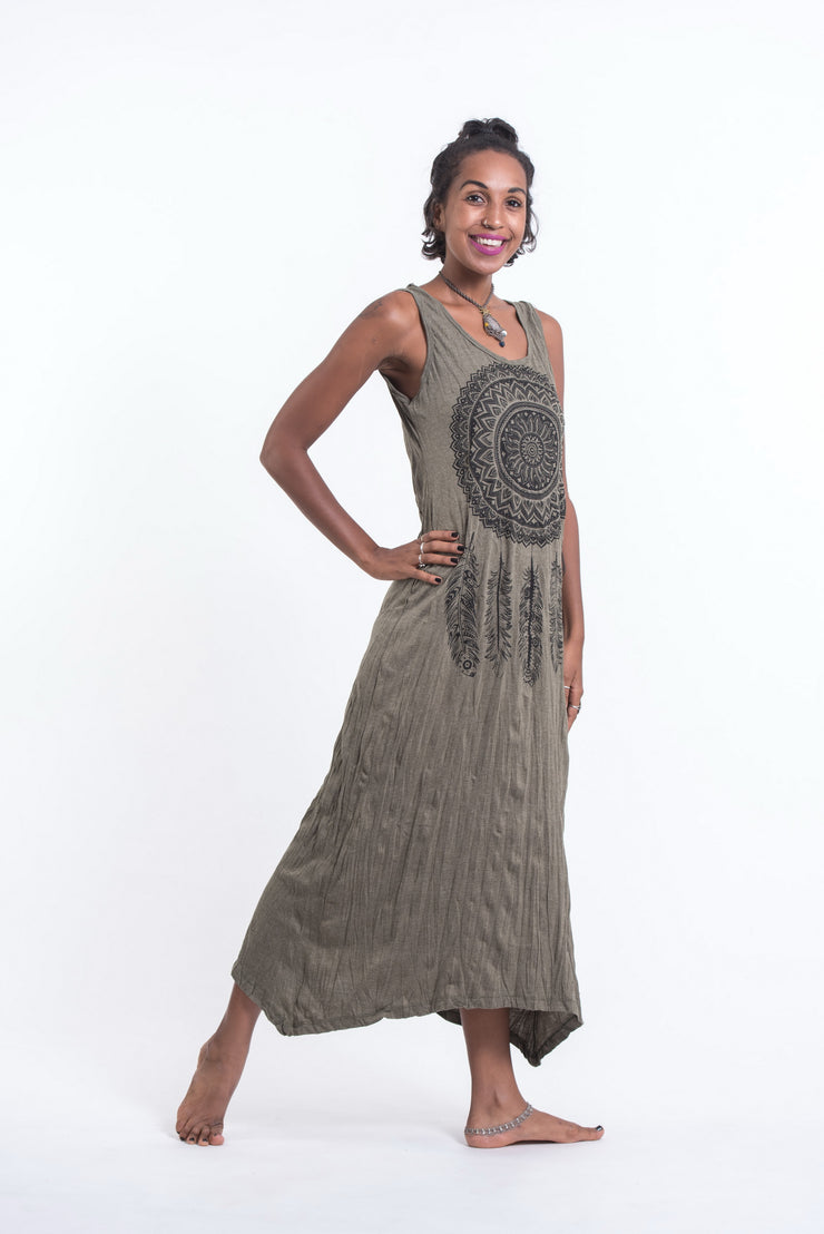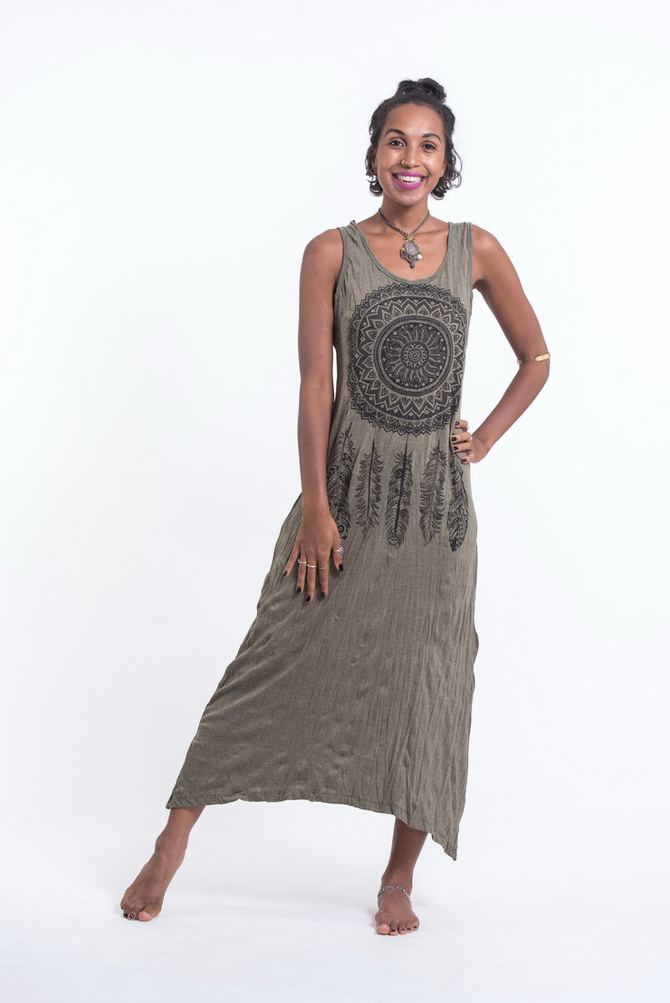 Womens Dreamcatcher Long Tank Dress in Green