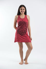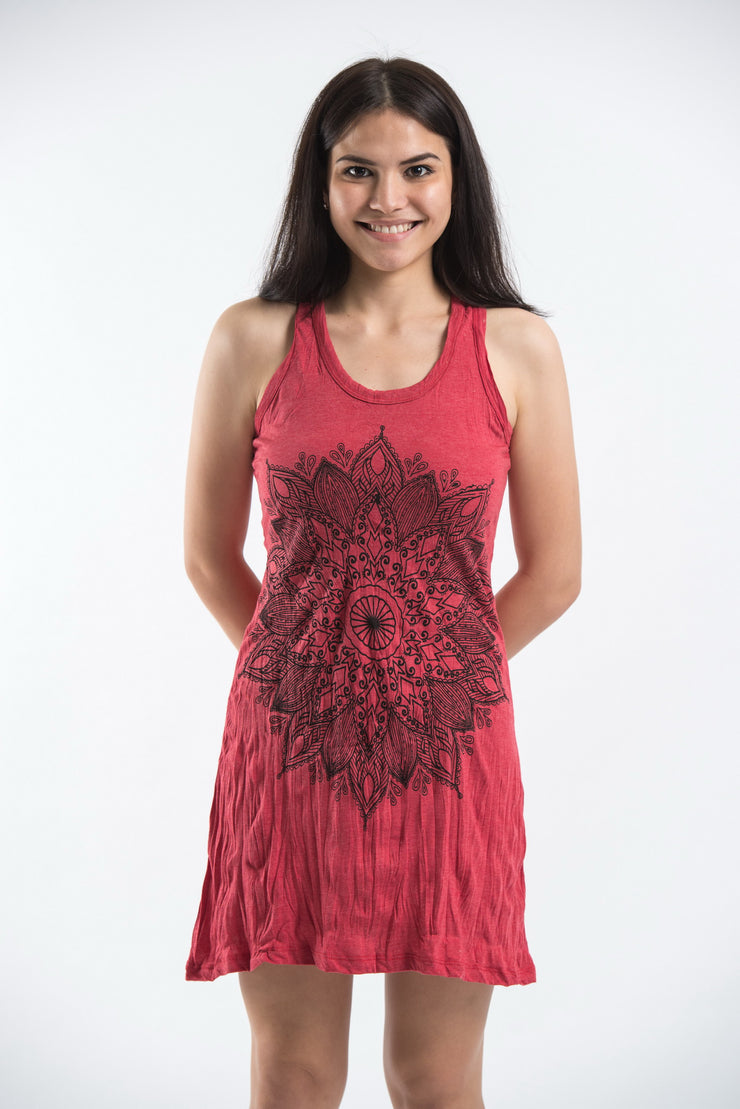 Womens Lotus Mandala Tank Dress in Red