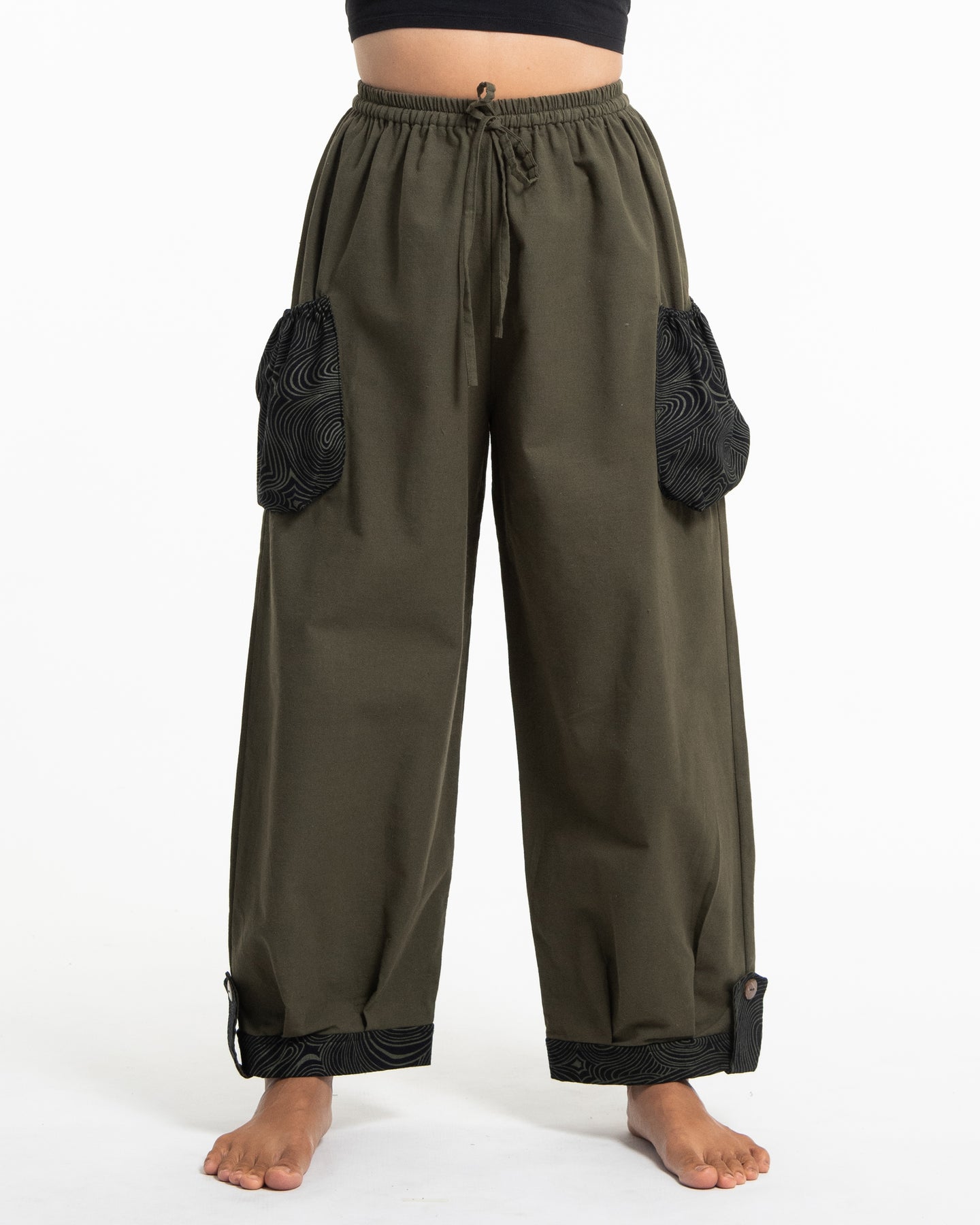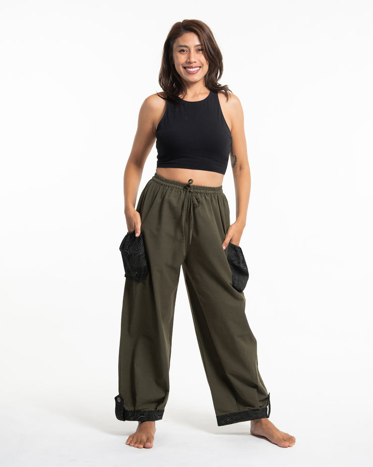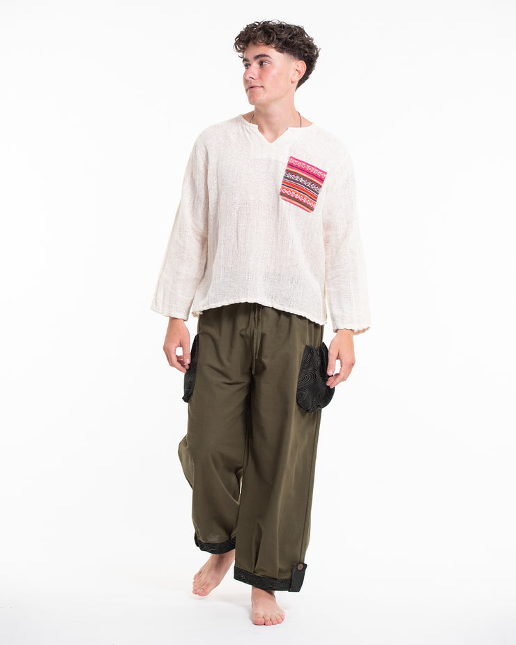 Thai Cotton Drawstring Pants With Hill Tribe Trim Cream