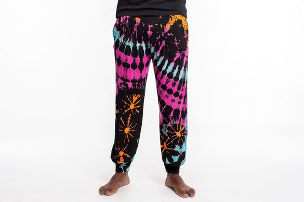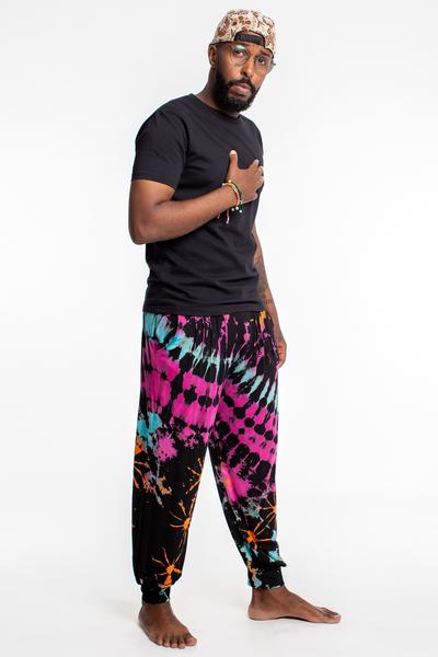 Unisex Tie Dye Cotton Harem Pants in Festival Black