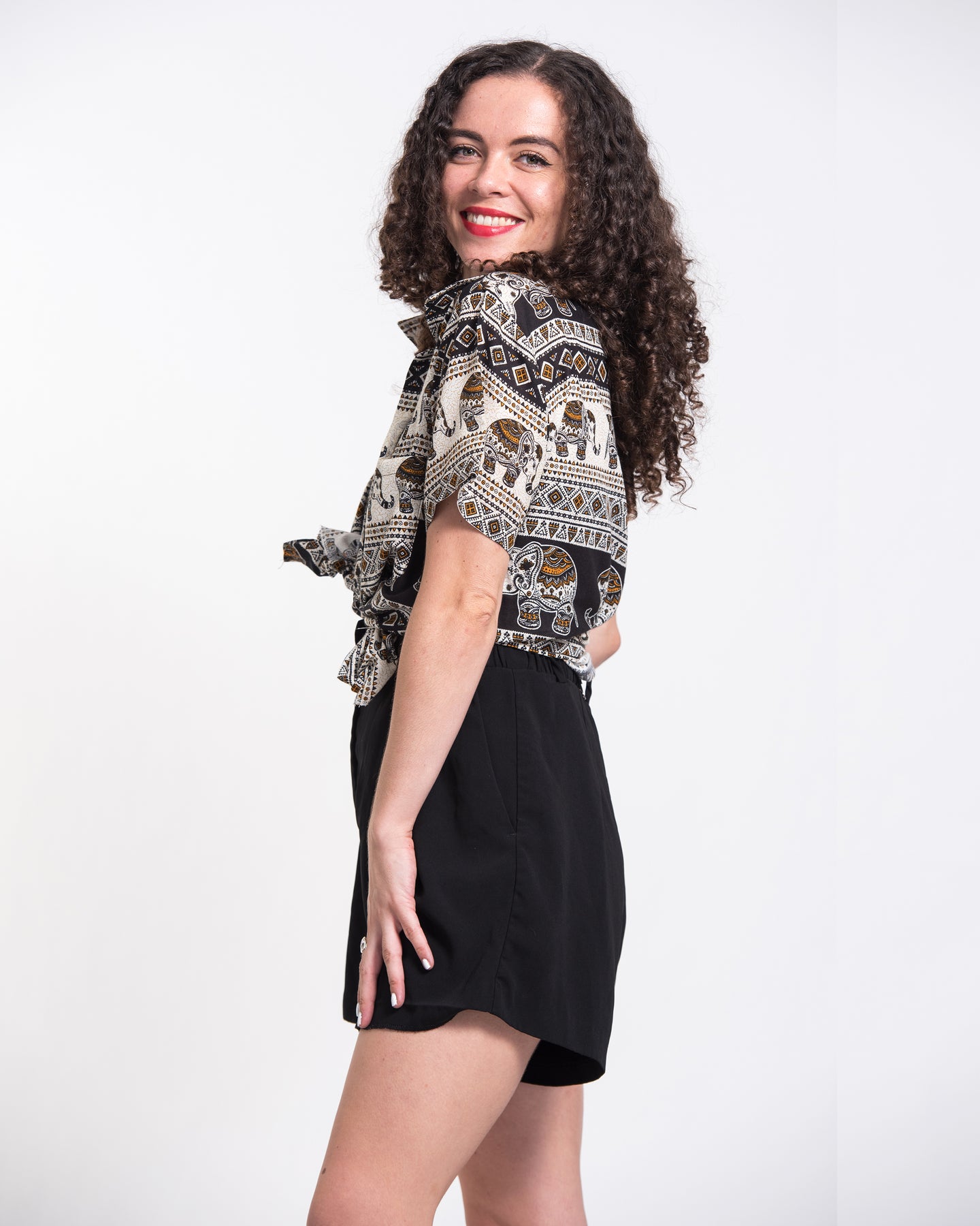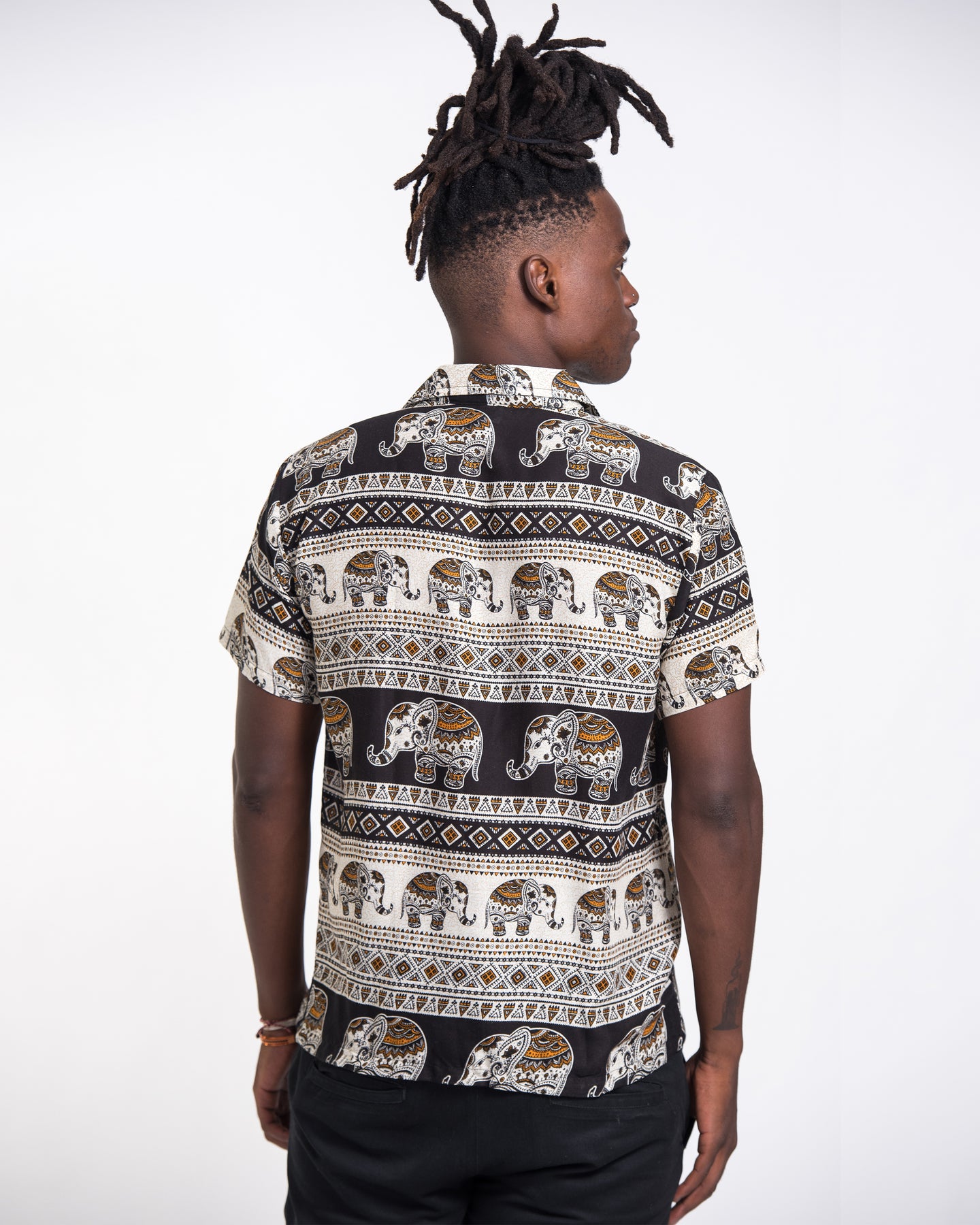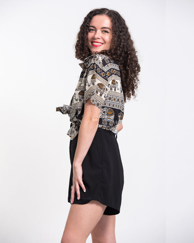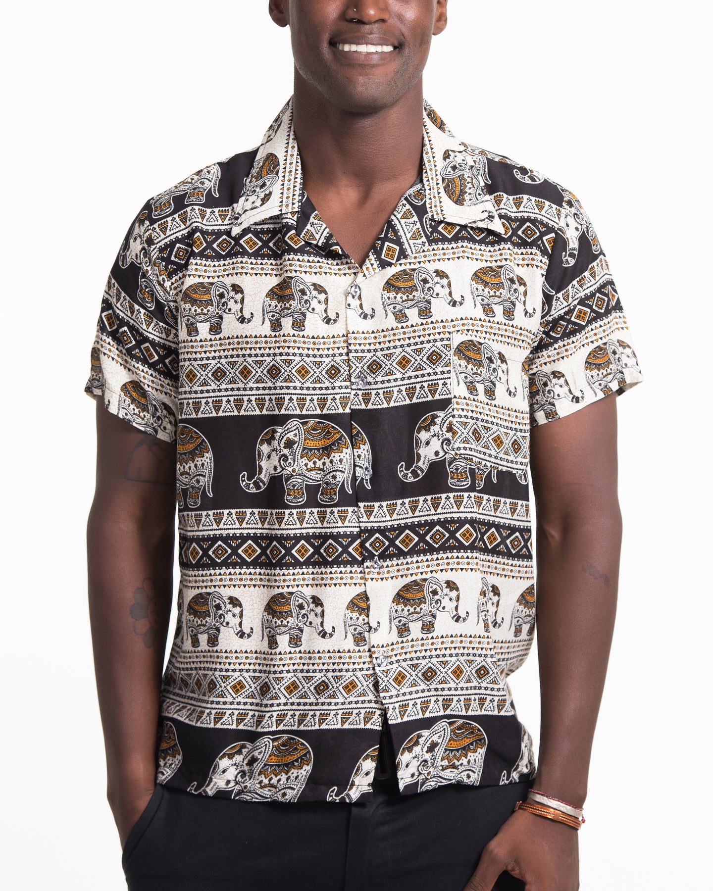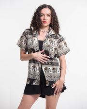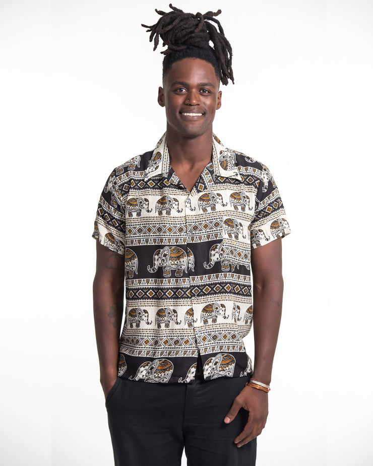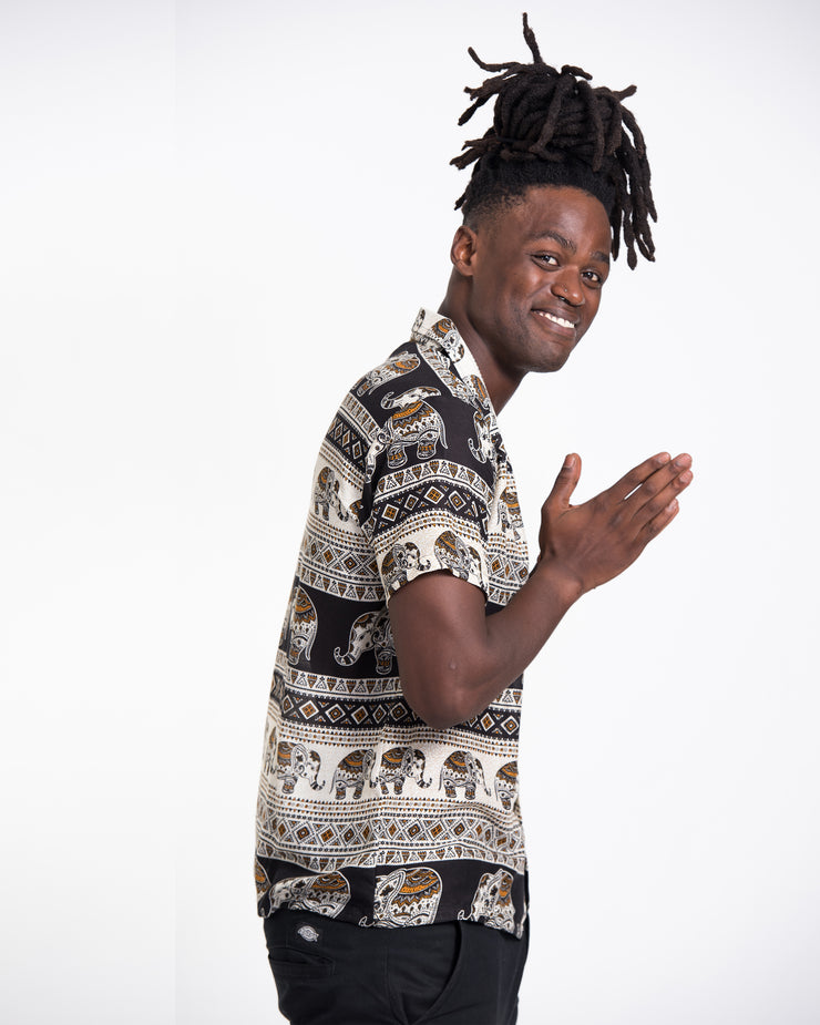 Tribal Elephant Short Sleeve Button Shirt in Black