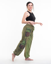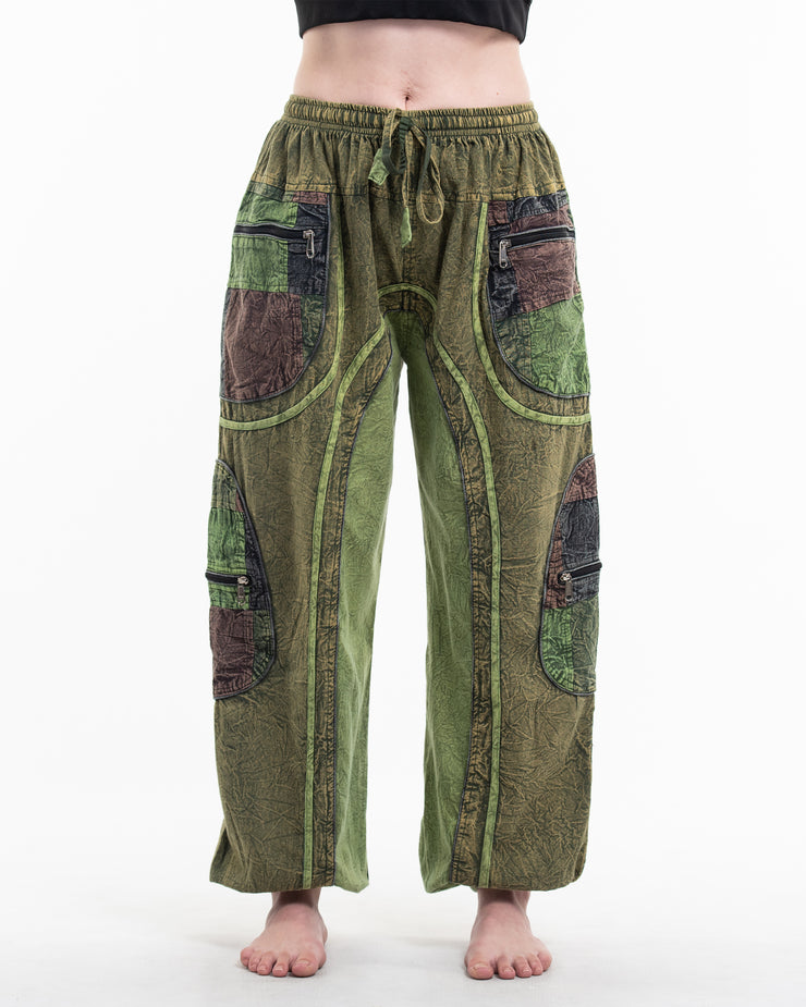 Unisex Patchwork Stone Washed Cargo Cotton Pants in Green 01