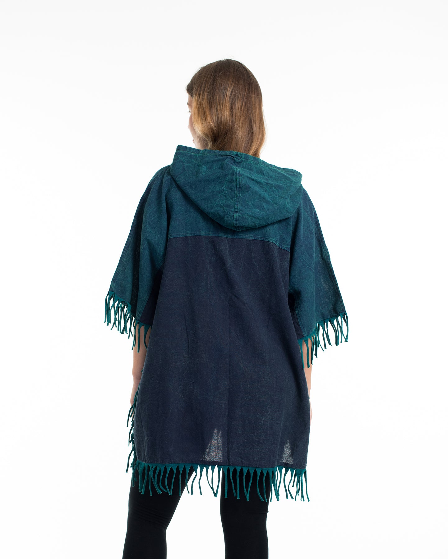 Stonewash Hooded Poncho – Effortless Boho Style