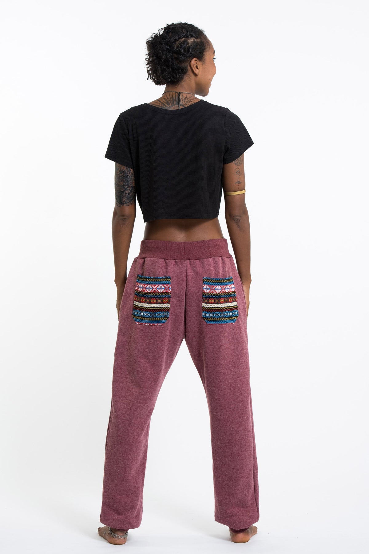 These fuzzy soft pants come with 2 stylish tribal aztec print back pockets, wide elastic waistband with raw cotton drawstring, and roll-up edge. Perfect for many occasions. -- lounging, exercising, yoga, and so on.
