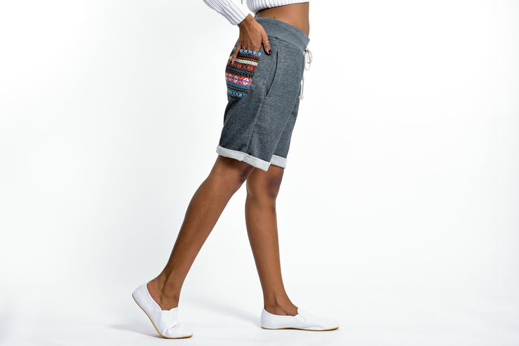 These fuzzy soft shorts come with 2 stylish tribal aztec print back pockets, wide elastic waistband with raw cotton drawstring, and roll-up edge. Perfect for many occasions. -- lounging, exercising, yoga, and so on.