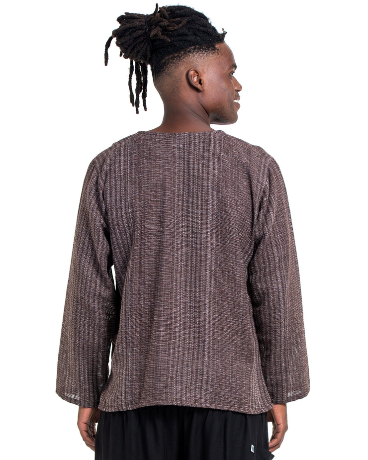 Unisex Woven Cotton Shirt with Tribal Pocket in Brown