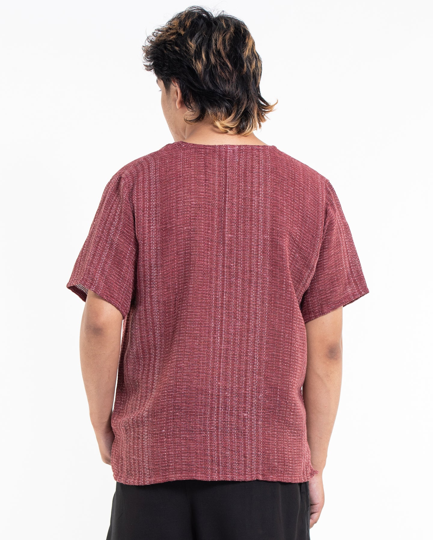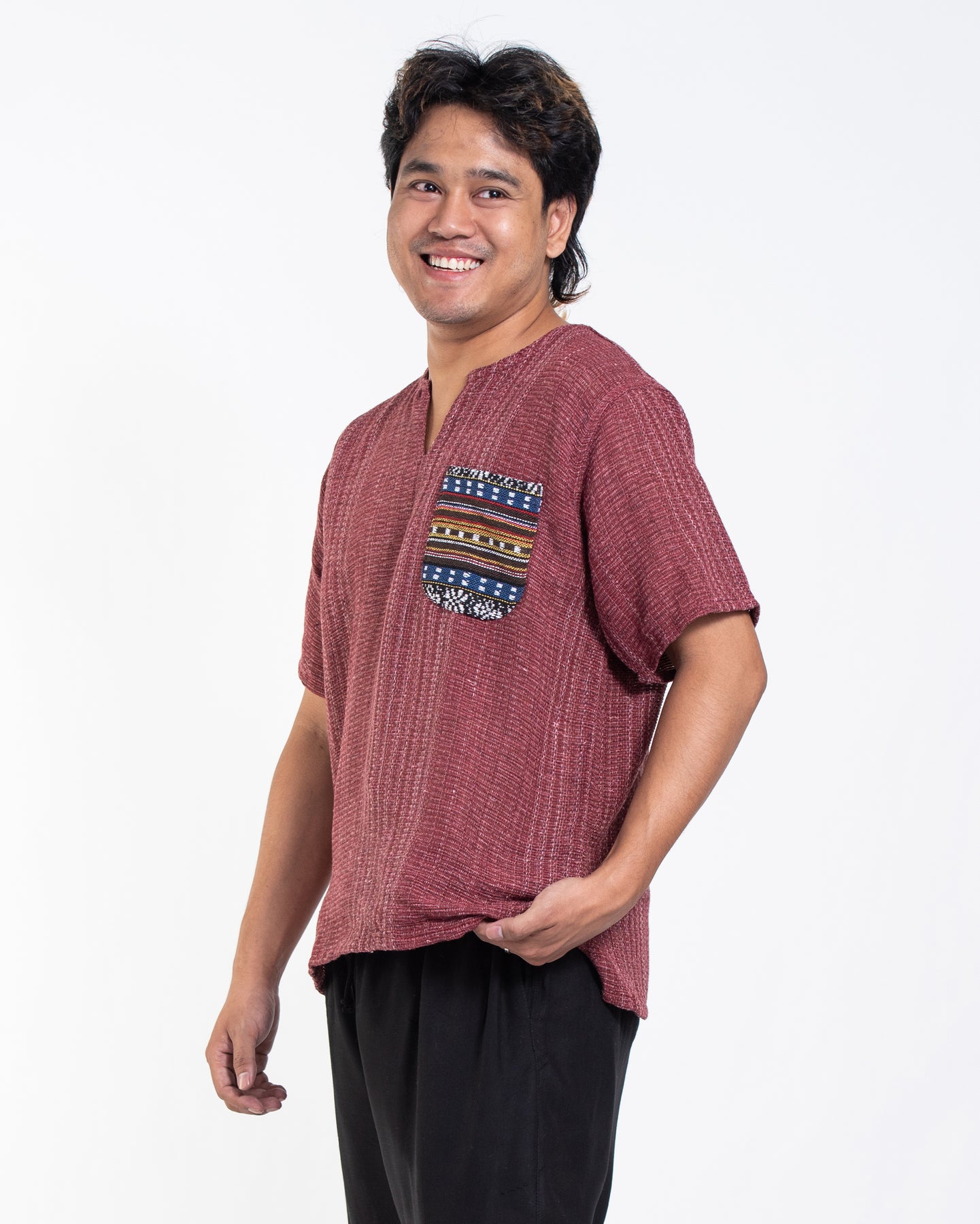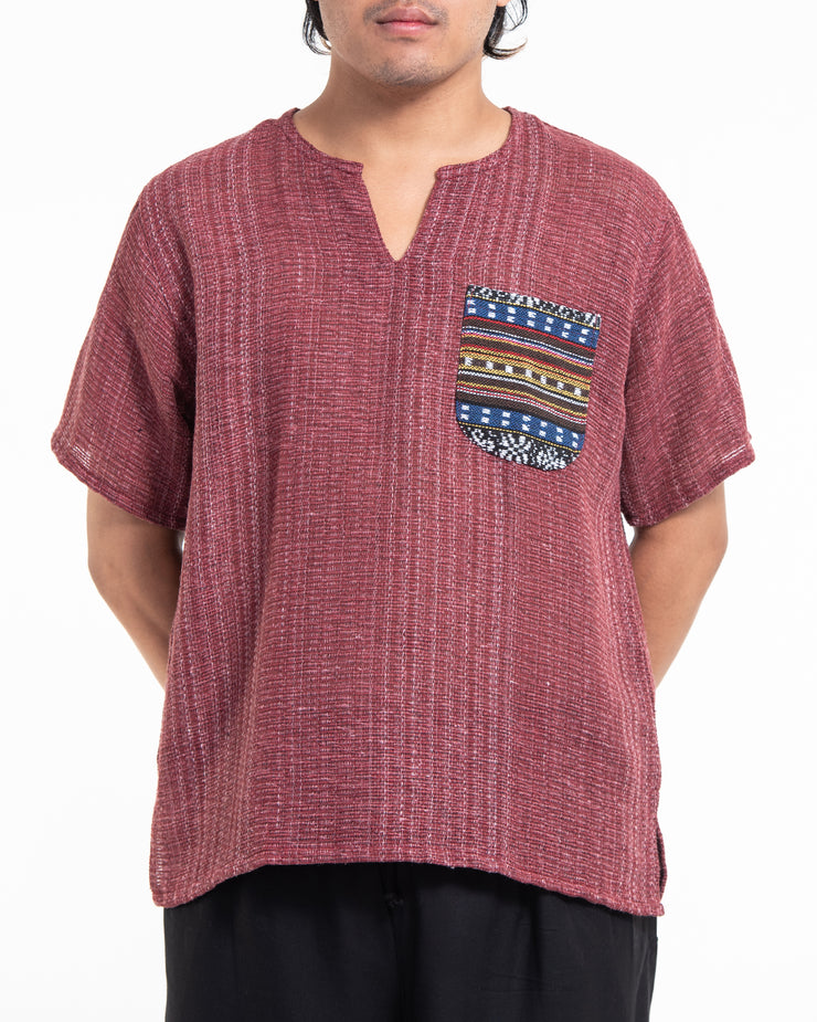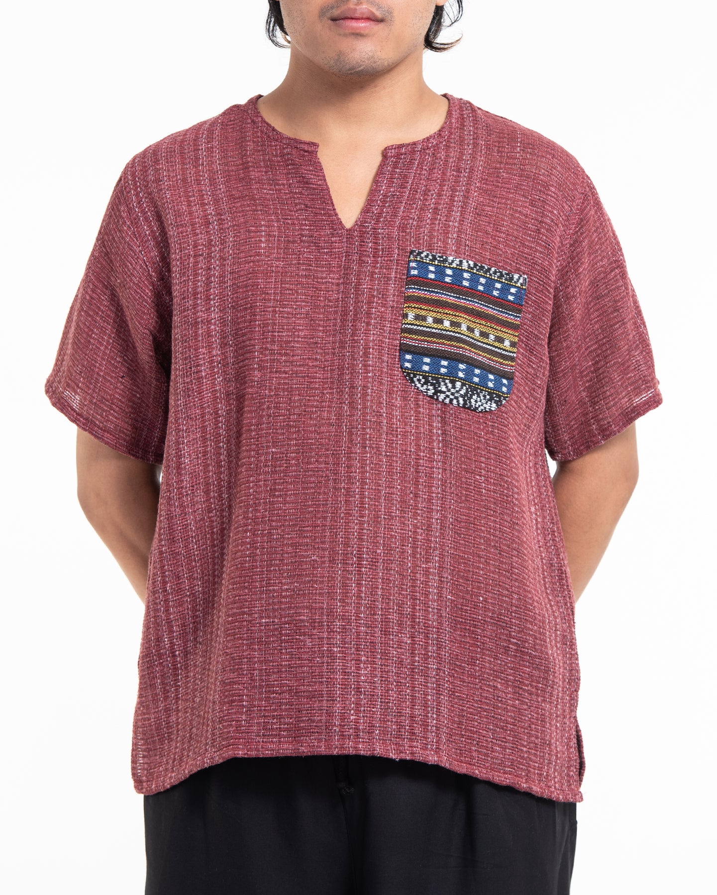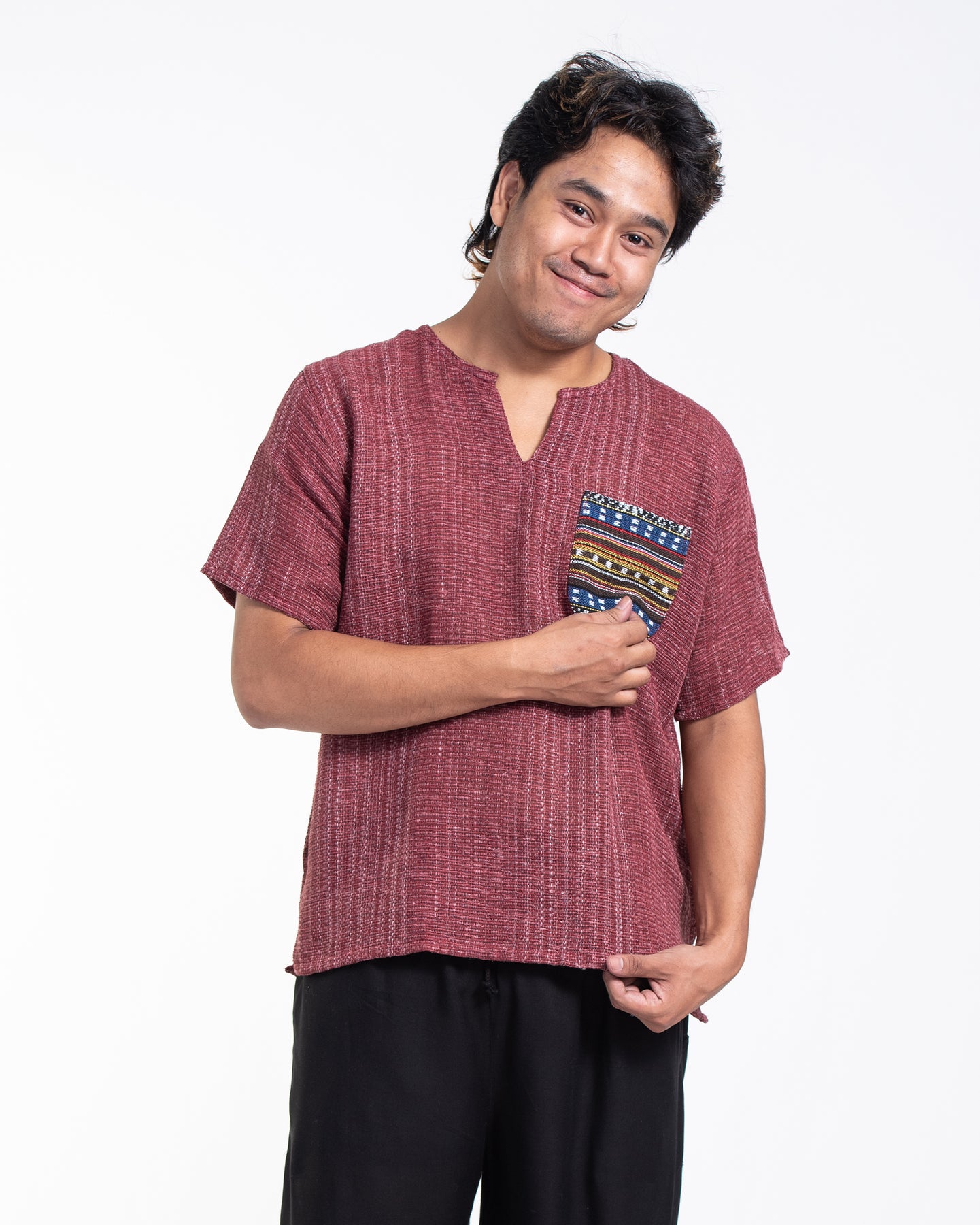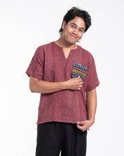 Unisex Woven Cotton Shirt with Tribal Pocket in Red