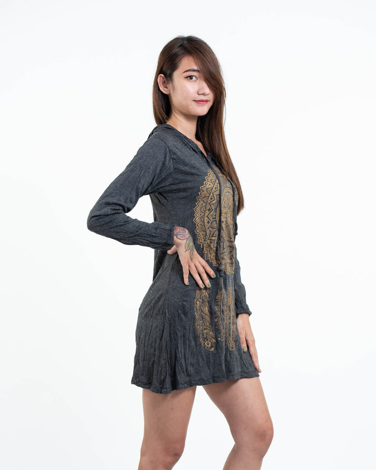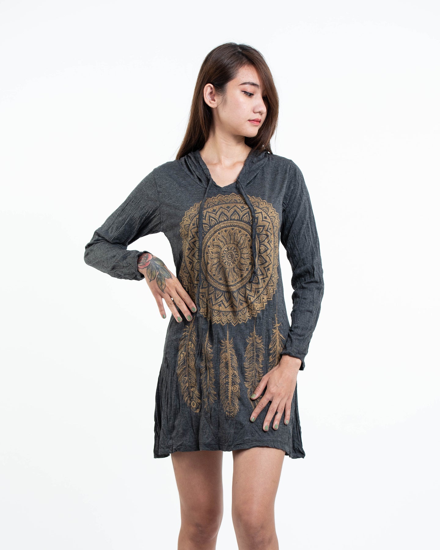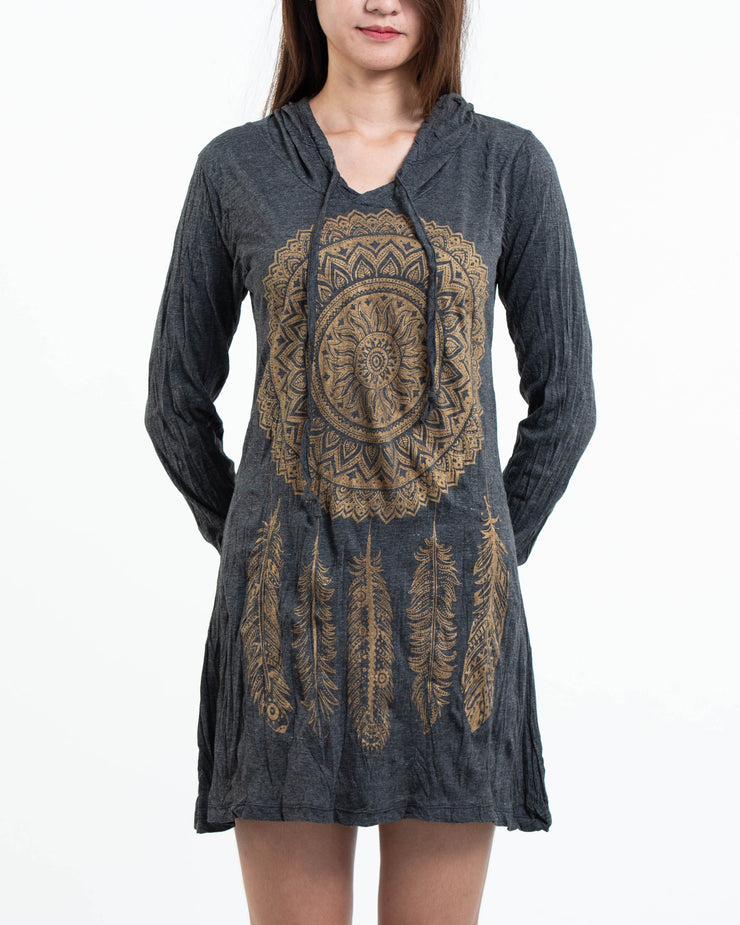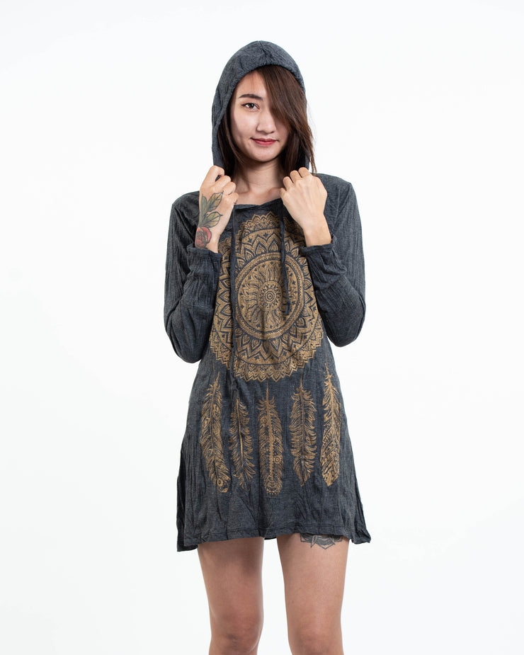 Womens Dreamcatcher Hoodie Dress in Gold on Black