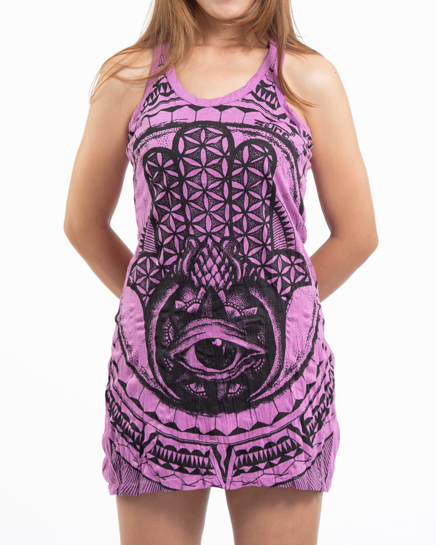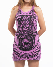 Womens Hamsa Eye Tank Dress in Pink
