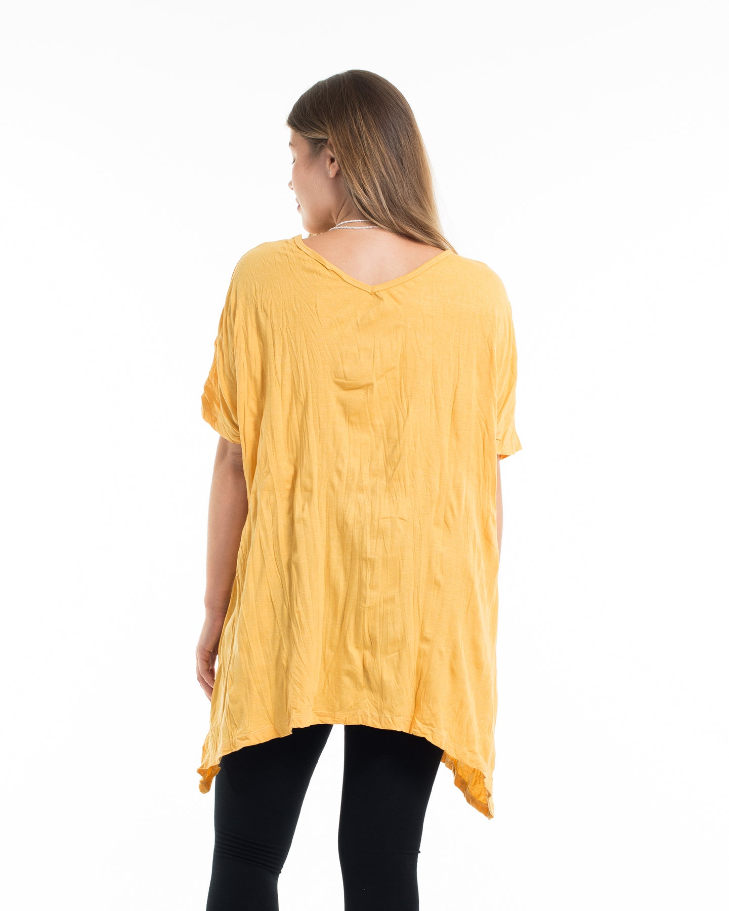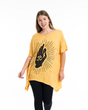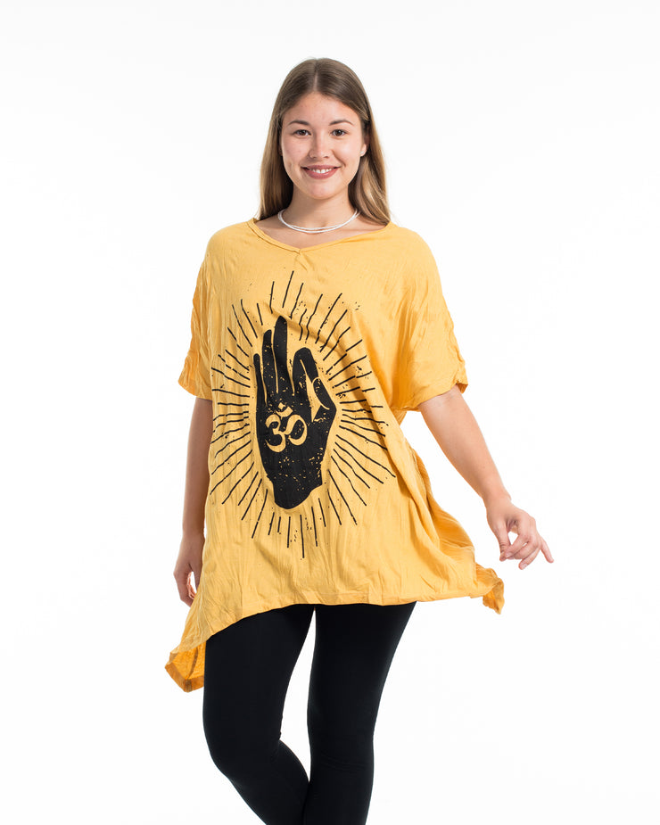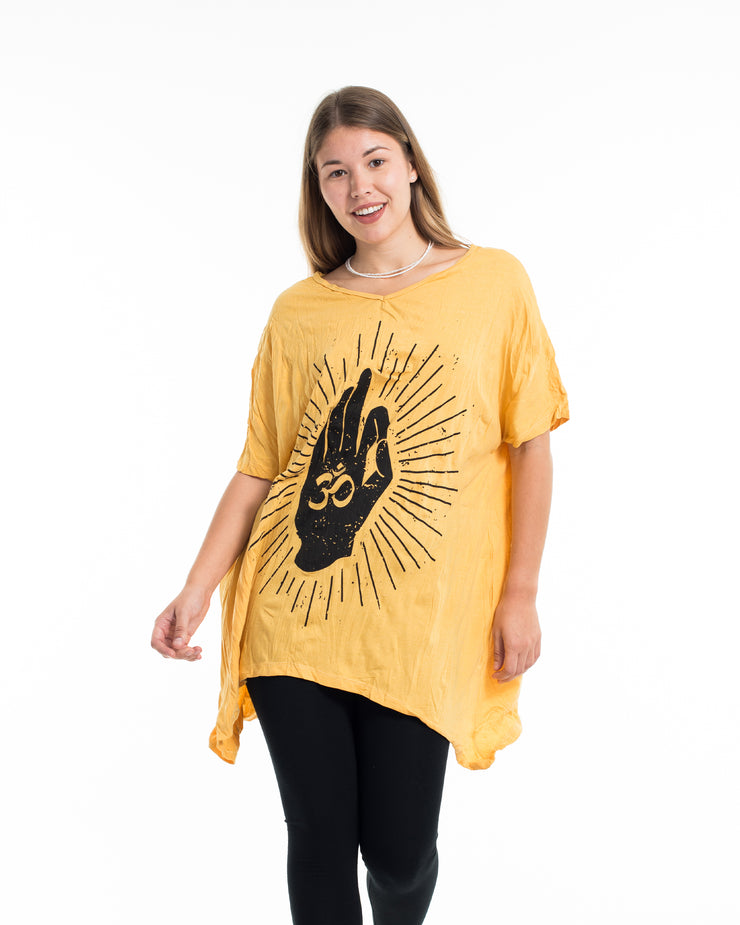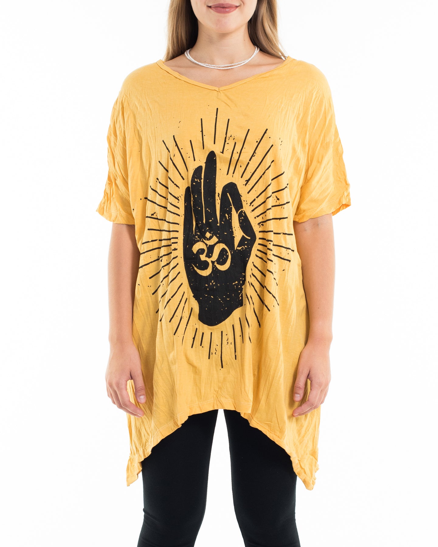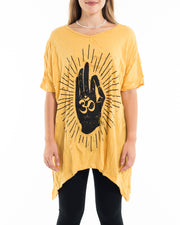 Womens Hand of Om Loose V Neck T-Shirt in Yellow