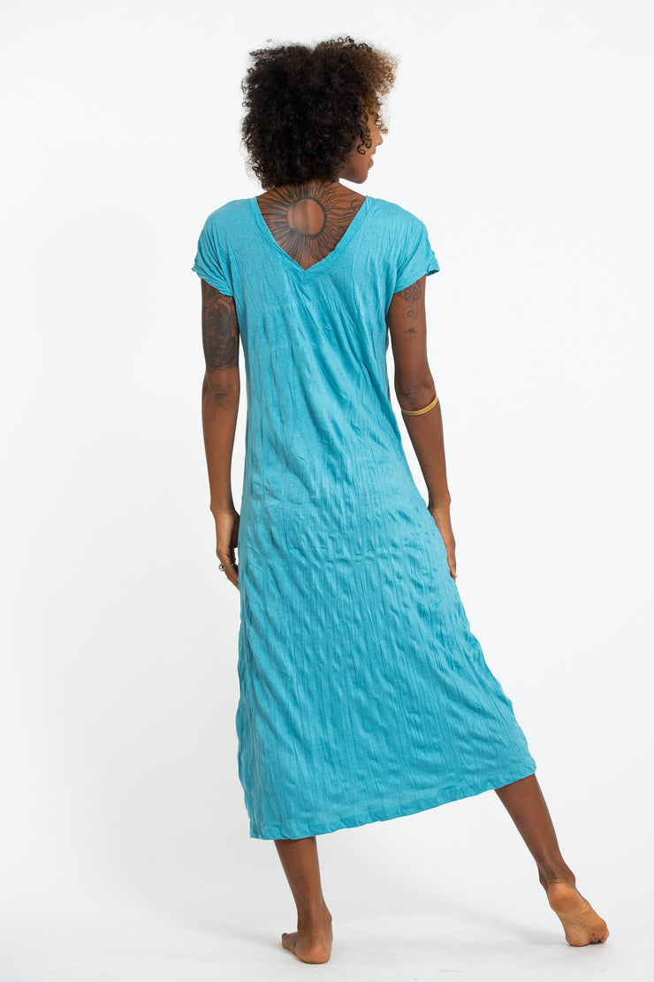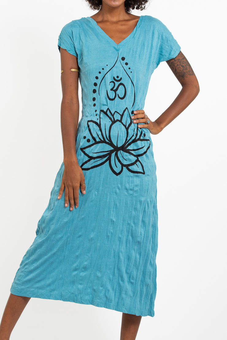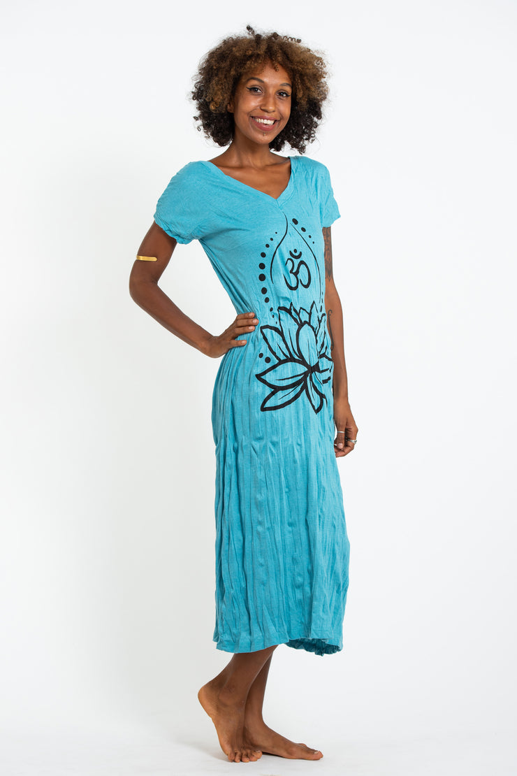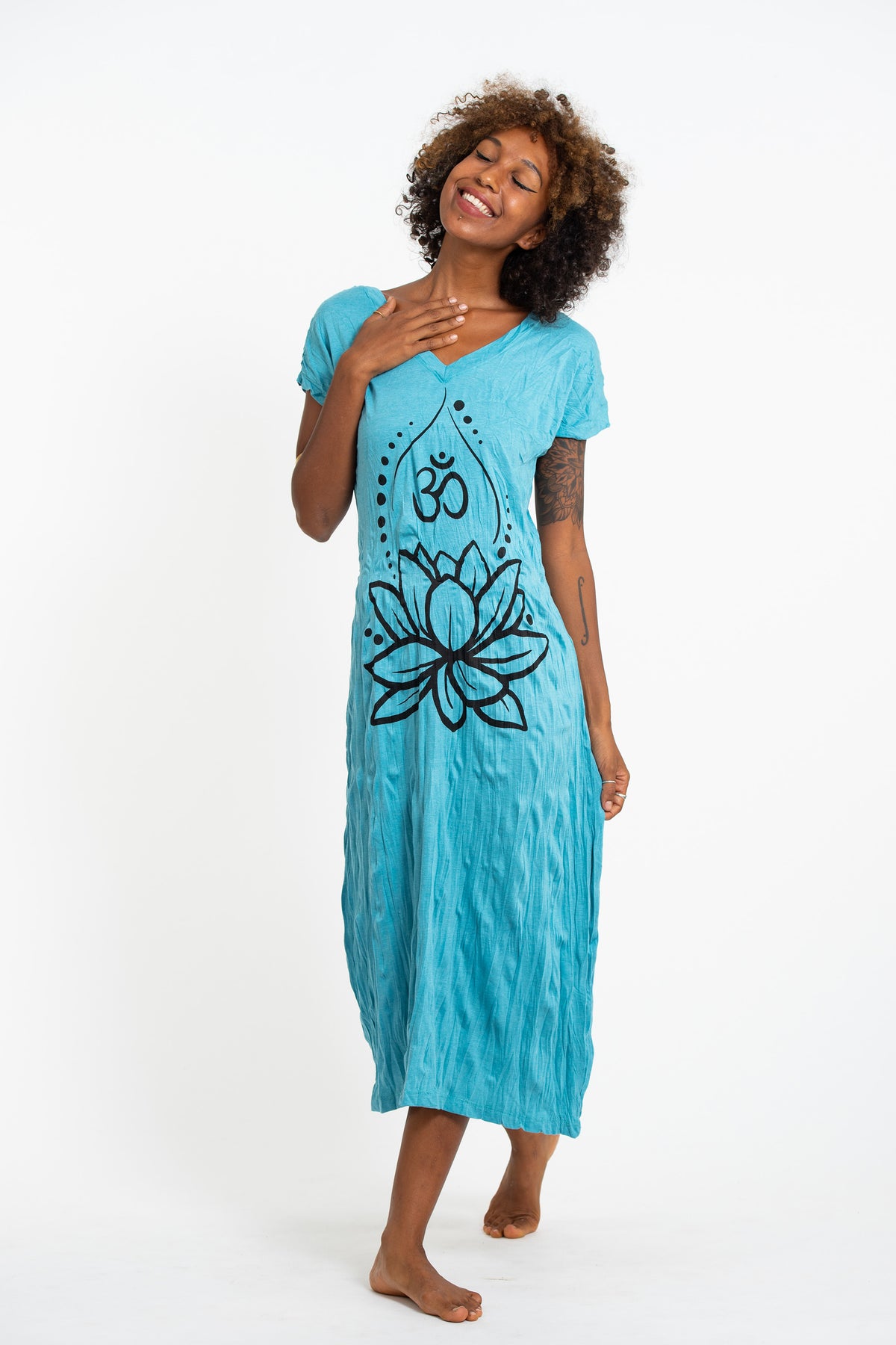 Womens Lotus Om V Neck Long Dress in Turquoise