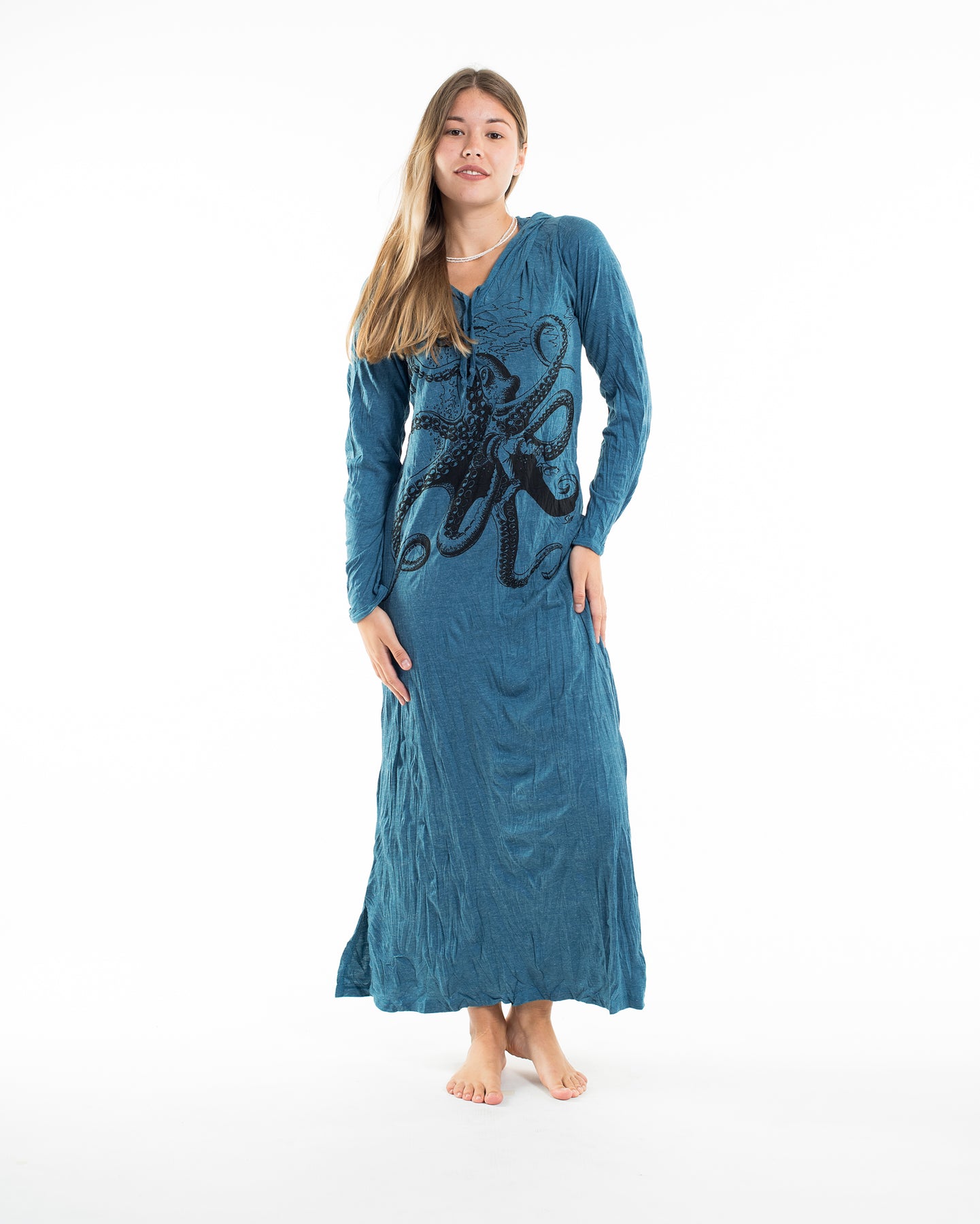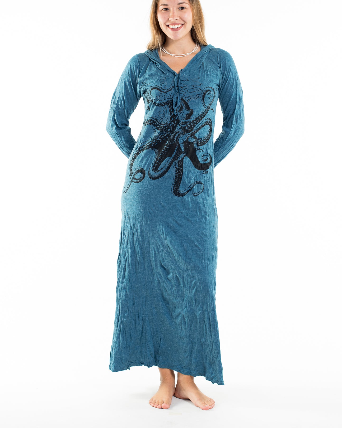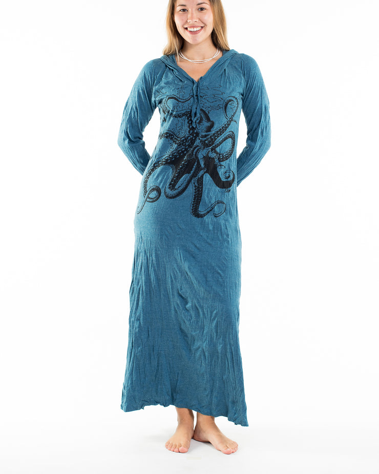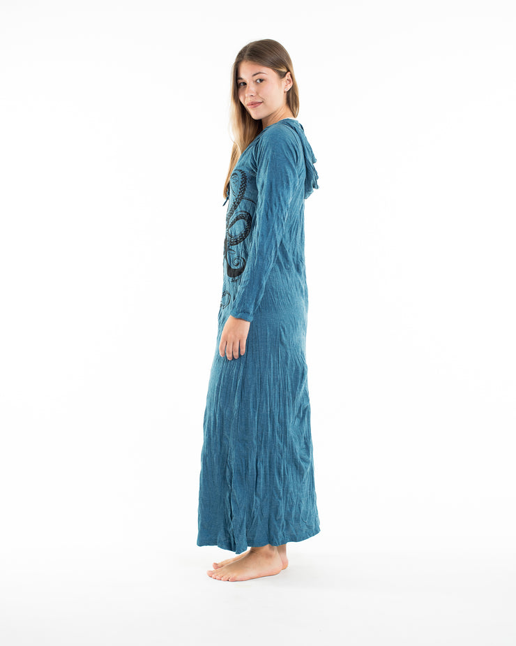 Super soft original Sure Design crinkled cotton long hoodie dress.